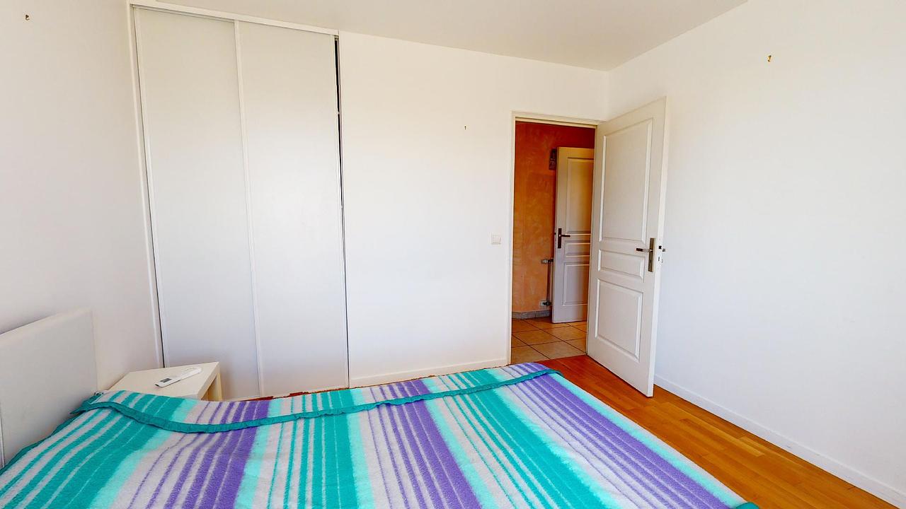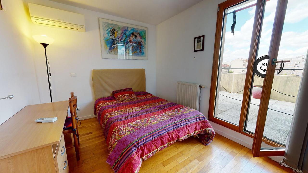 Enfin, 4 chambres d'une surface égale complètent ce logement. Elles sont toutes meublées avec lit double, bureaux et rangement, et ont toutes accès aux terrasses par la porte-fenêtre.