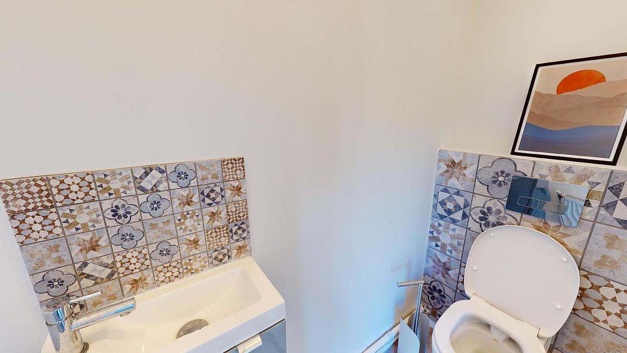 La maison comporte deux salles d'eau. La première est équipée d'une cabine de douche et d'un meuble vasque complété par un miroir. La seconde salle de bain offre le choix entre une baignoire et une cabine de douche, ainsi qu'un meuble double vasque doté d'un grand miroir.
