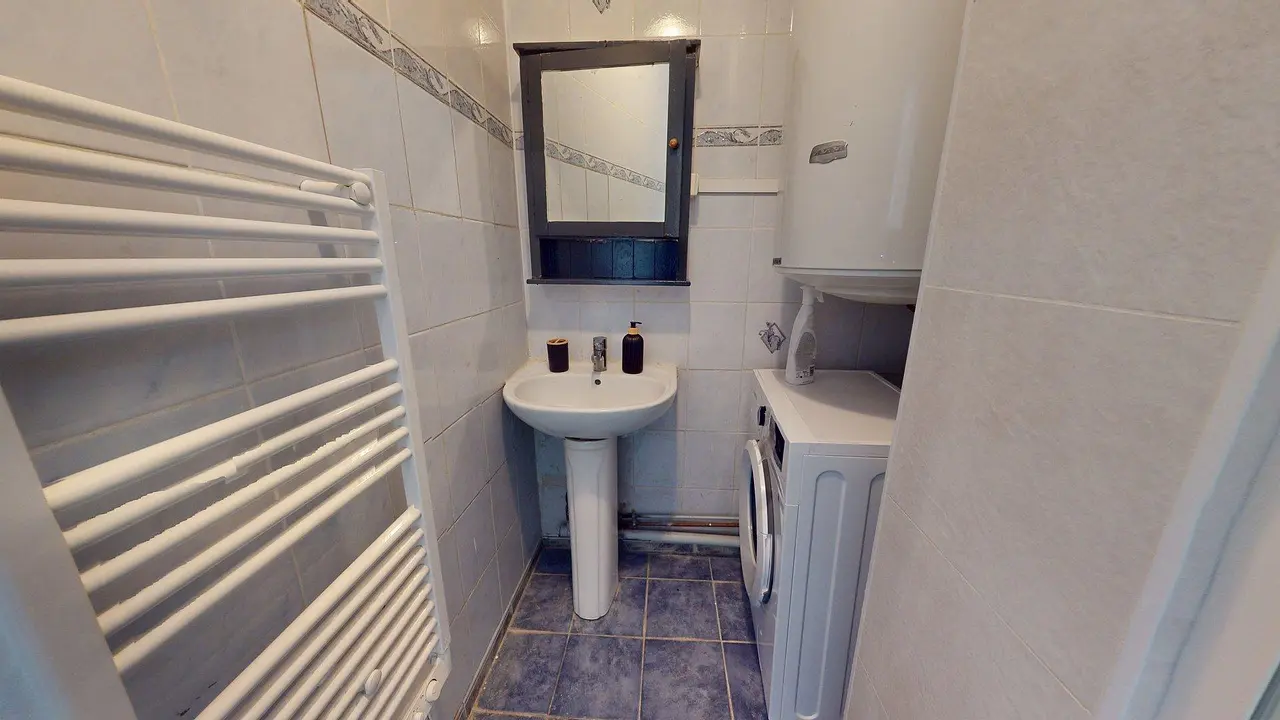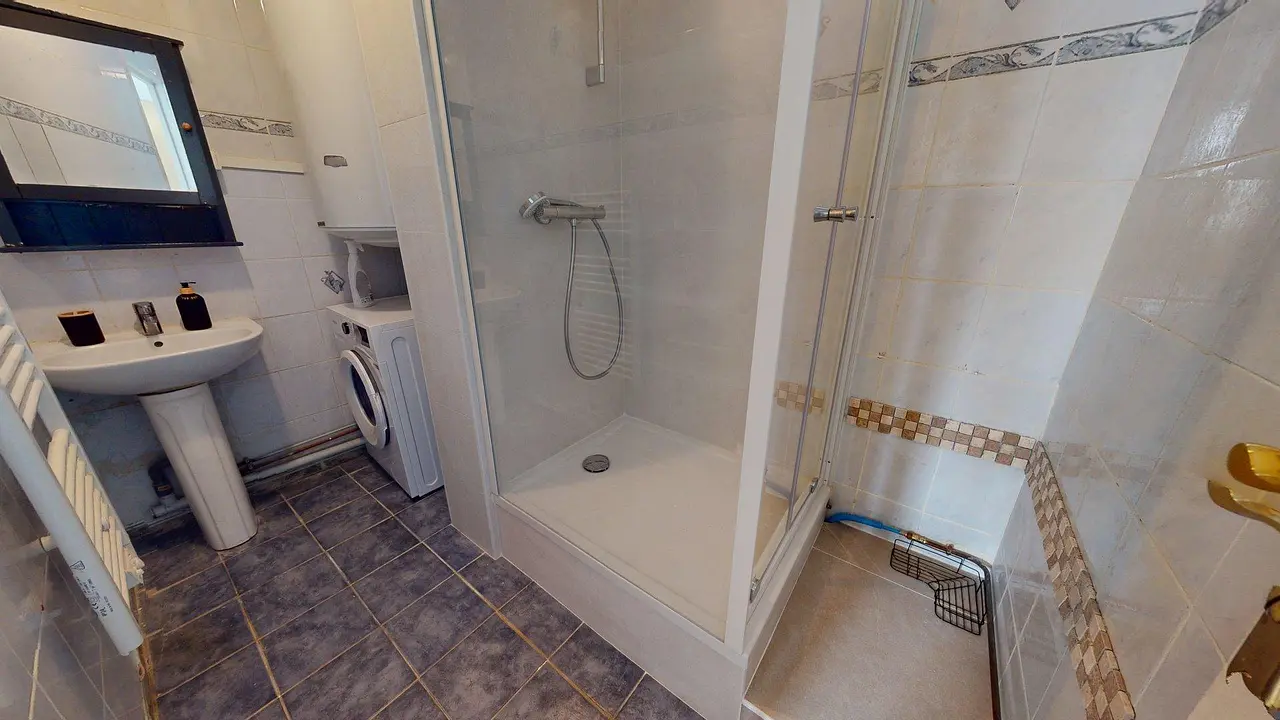 La salle d'eau dispose d'une douche, d'un lavabo avec miroir, d'un sèche-serviette et d'une machine à laver. Les WC sont séparés pour plus de confort.
