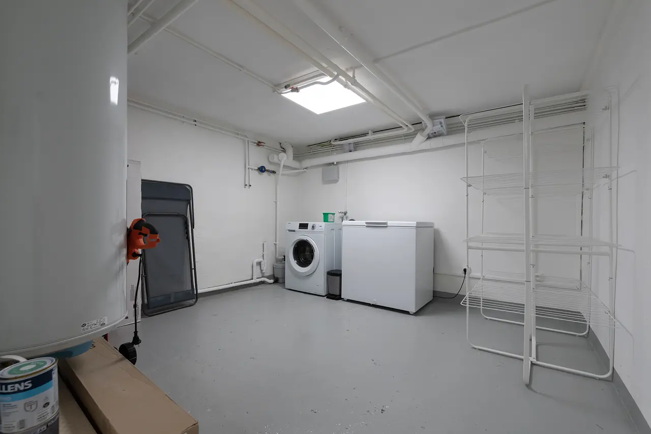 Une buanderie au sous-sol, équipée d’une machine à laver et d'un congélateur supplémentaire, pour vos besoins pratiques