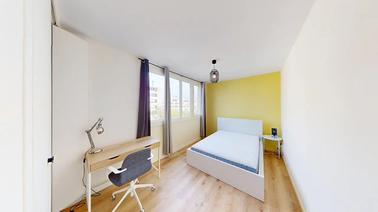 Vous bénéficiez d’un jardin commun, d’un local à vélos sécurisé ainsi que d’une cave mise à disposition des locataires.La chambre est dotée d'un lit double, d'une table de chevet, d'un placard de rangement et d'un bureau.