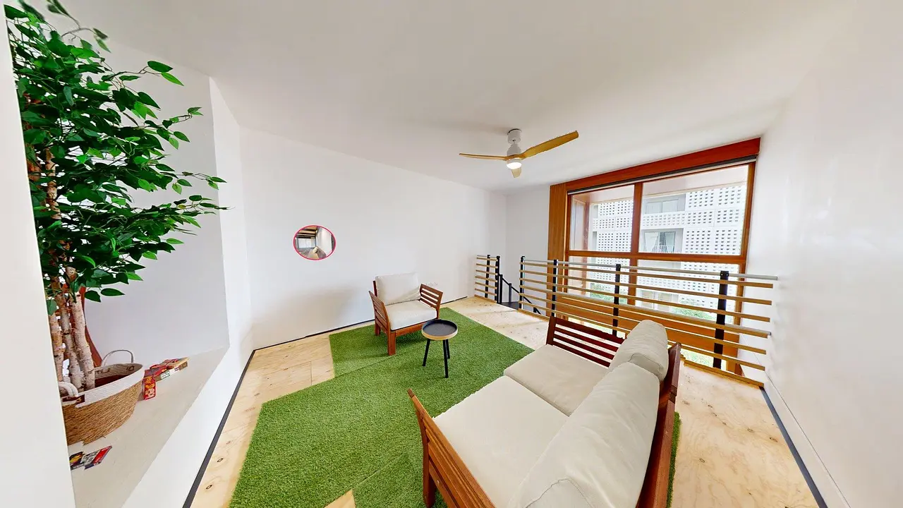 🏠 LES ESPACES COMMUNSProfitez d’un séjour lumineux et convivial de 30 m², meublé avec canapé, fauteuil, table basse, et ouvert sur un balcon. Une table à manger vous attend pour partager vos repas en colocation.