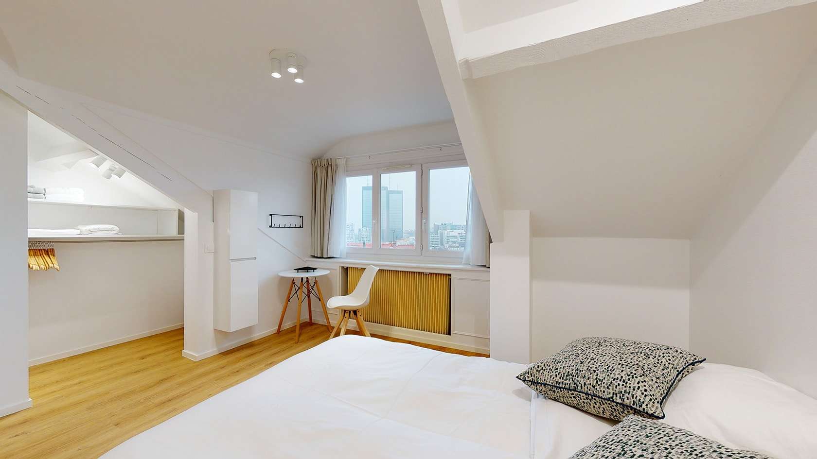 Votre future chambre, la Chambre 10, est un cocon douillet situé au deuxième étage. Elle est conçue pour une personne et comprend un lit double confortable avec des draps de qualité, une penderie pour vos vêtements, ainsi qu'une table et une chaise pour vos moments de travail ou de détente. La chambre partage une salle de bain moderne avec une autre unité, garantissant intimité et confort.