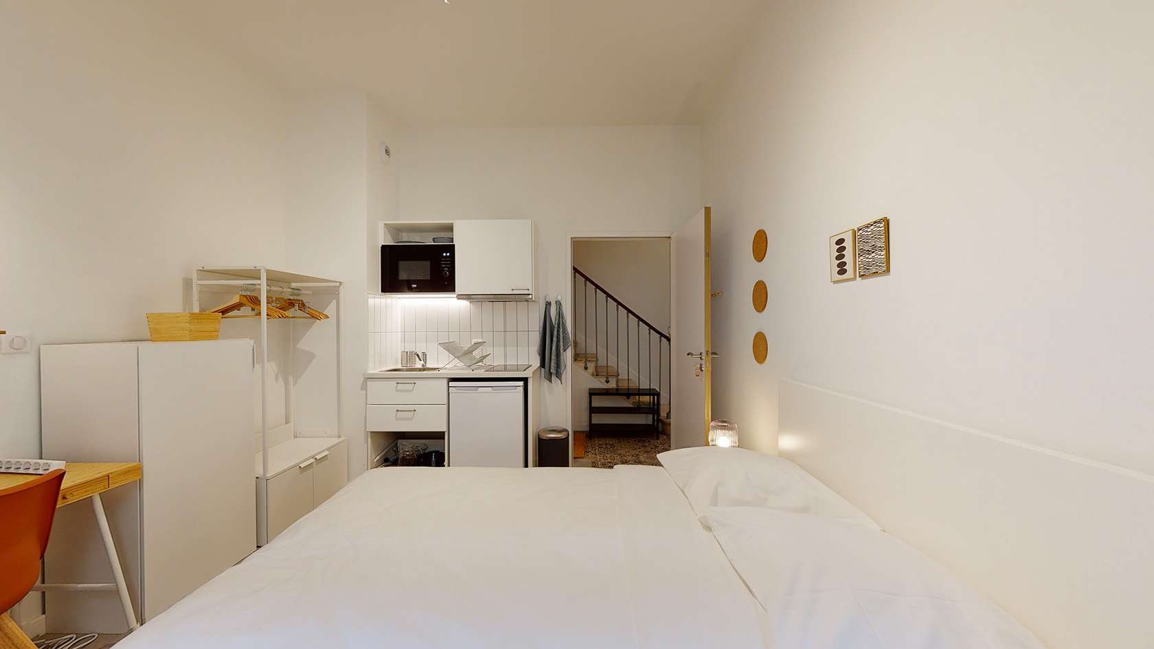 Bienvenue à la résidence Rosa, un espace de coliving chaleureux et convivial. Avec ses 300m2 répartis sur trois étages, Rosa offre douze studios privés et des espaces communs où il fait bon vivre. Vous aurez accès à une cuisine ouverte entièrement équipée pour préparer vos repas, un salon confortable pour vous détendre et un sous-sol avec buanderie pour laver et sécher votre linge. À l'extérieur, profitez d'un patio verdoyant pour prendre l'air, mais n'oubliez pas que les voitures ne sont pas autorisées. Pour les cyclistes, un rack à vélo est disponible.