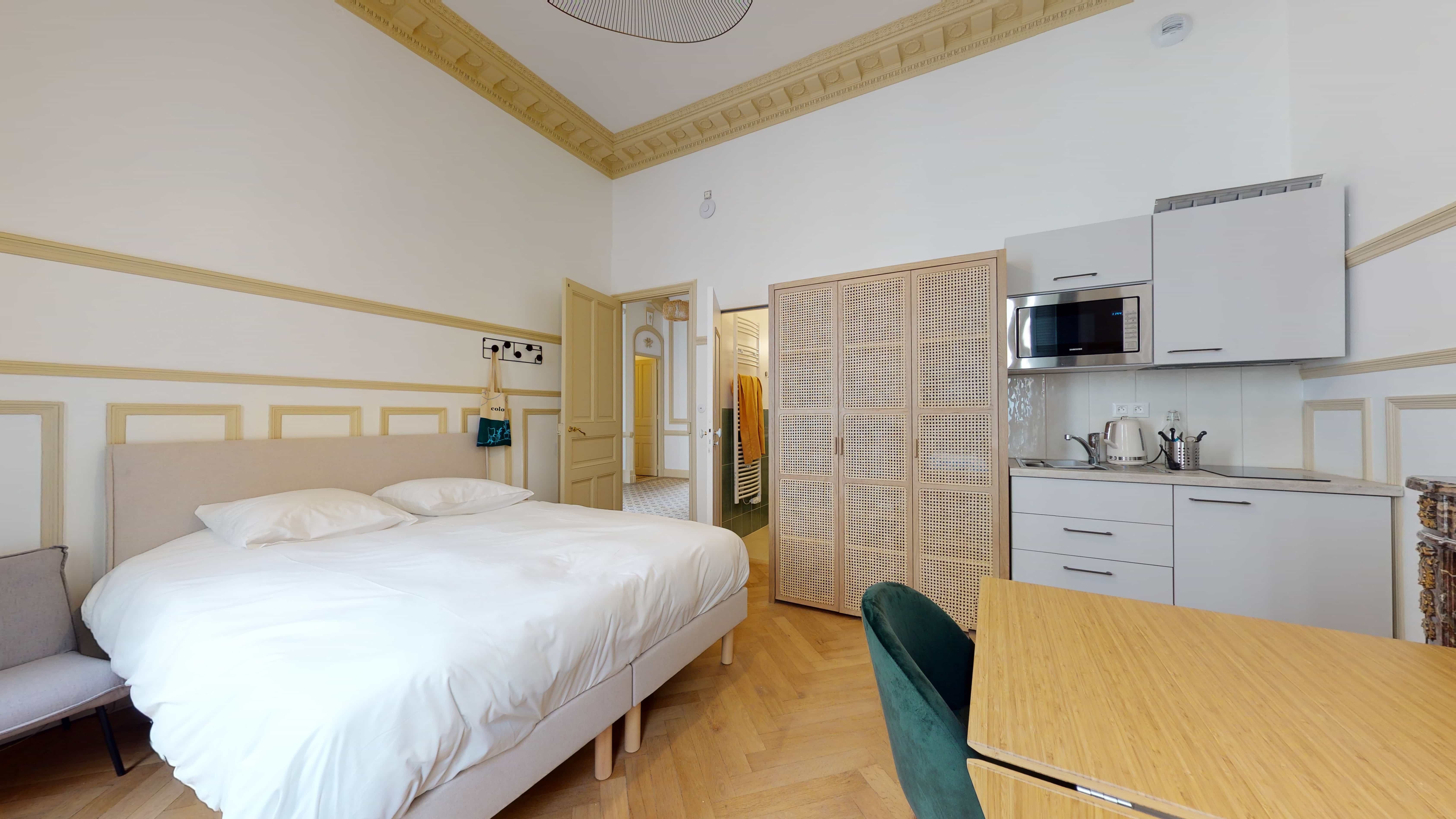 Bienvenue à la résidence Boudoir, un espace de coliving convivial et moderne. Avec ses 460m2 répartis sur deux étages, cette maison offre quatorze studios privés et des espaces communs où il fait bon vivre. Vous pourrez profiter d'une cuisine toute équipée pour préparer vos repas, d'un salon confortable pour vous détendre, d'une salle TV pour vos soirées cinéma, d'une buanderie pratique avec machines à laver et sèche-linge, et même d'une piscine extérieure pour vous rafraîchir les jours de chaleur.