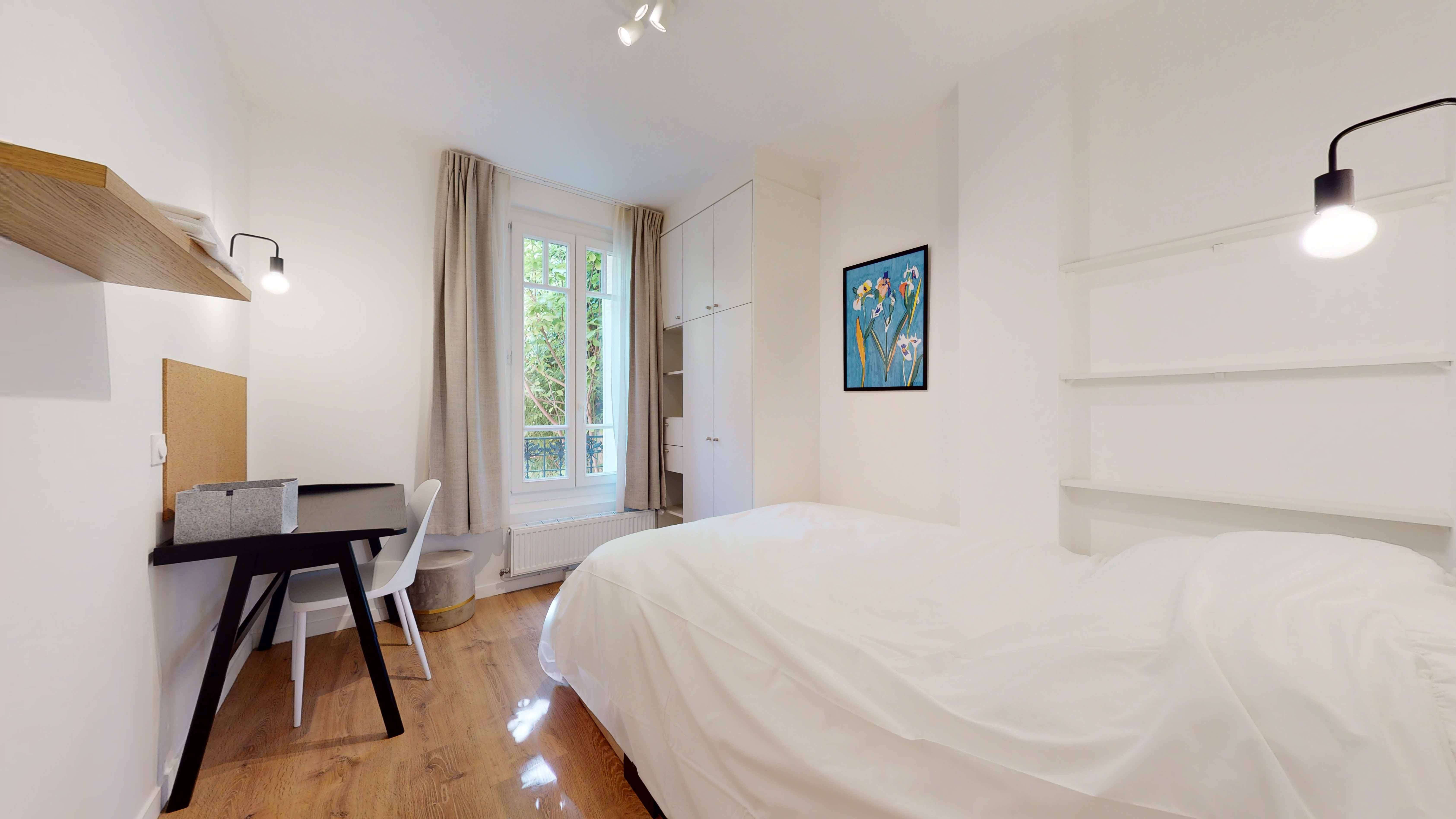 Bienvenue à la résidence Bowie, un espace de coliving chaleureux et convivial qui s'étend sur 290m². La Maison Bowie est composée de douze unités privatives réparties sur quatre étages, accessibles par des escaliers. Les résidents ont accès à des espaces communs entièrement équipés, incluant un salon spacieux avec cuisine ouverte, une salle de cinéma pour se détendre, une terrasse pour profiter des beaux jours, ainsi qu'un jardin pour un peu de verdure en ville. Pour plus de commodité, une buanderie avec lave-linge et sèche-linge est également à disposition.