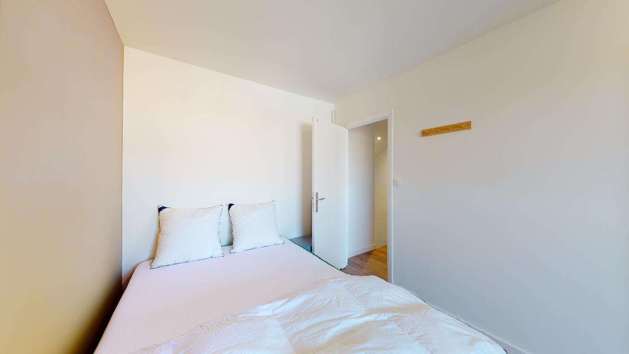 La chambre proposée, surnommée "Room 4", est un espace privé et confortable de 11 m². Elle est meublée d'un lit double avec literie de qualité, d'une armoire pour vos affaires, ainsi que d'un bureau et d'une chaise pour étudier ou travailler en toute tranquillité. La salle de bain, équipée d'une douche et de toilettes, est à partager avec les autres résidents.