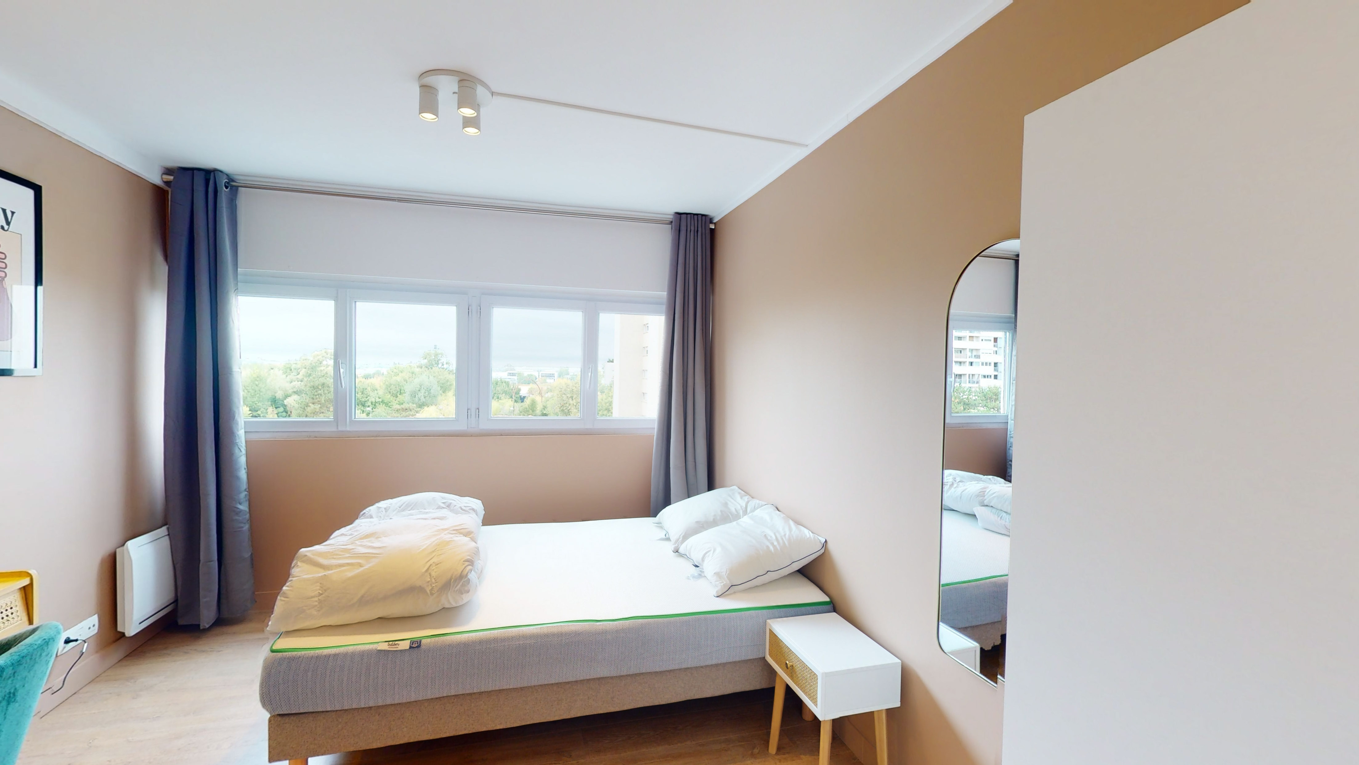 La chambre "Room 2" est conçue spécialement pour une personne qui apprécie son espace privé. Avec une surface de 12 m², elle est équipée d'un lit double confortable, d'une armoire pour vos affaires, d'une chaise et d'un bureau pour étudier ou travailler en toute tranquillité. Elle partage une salle de bain moderne avec quelques autres locataires.