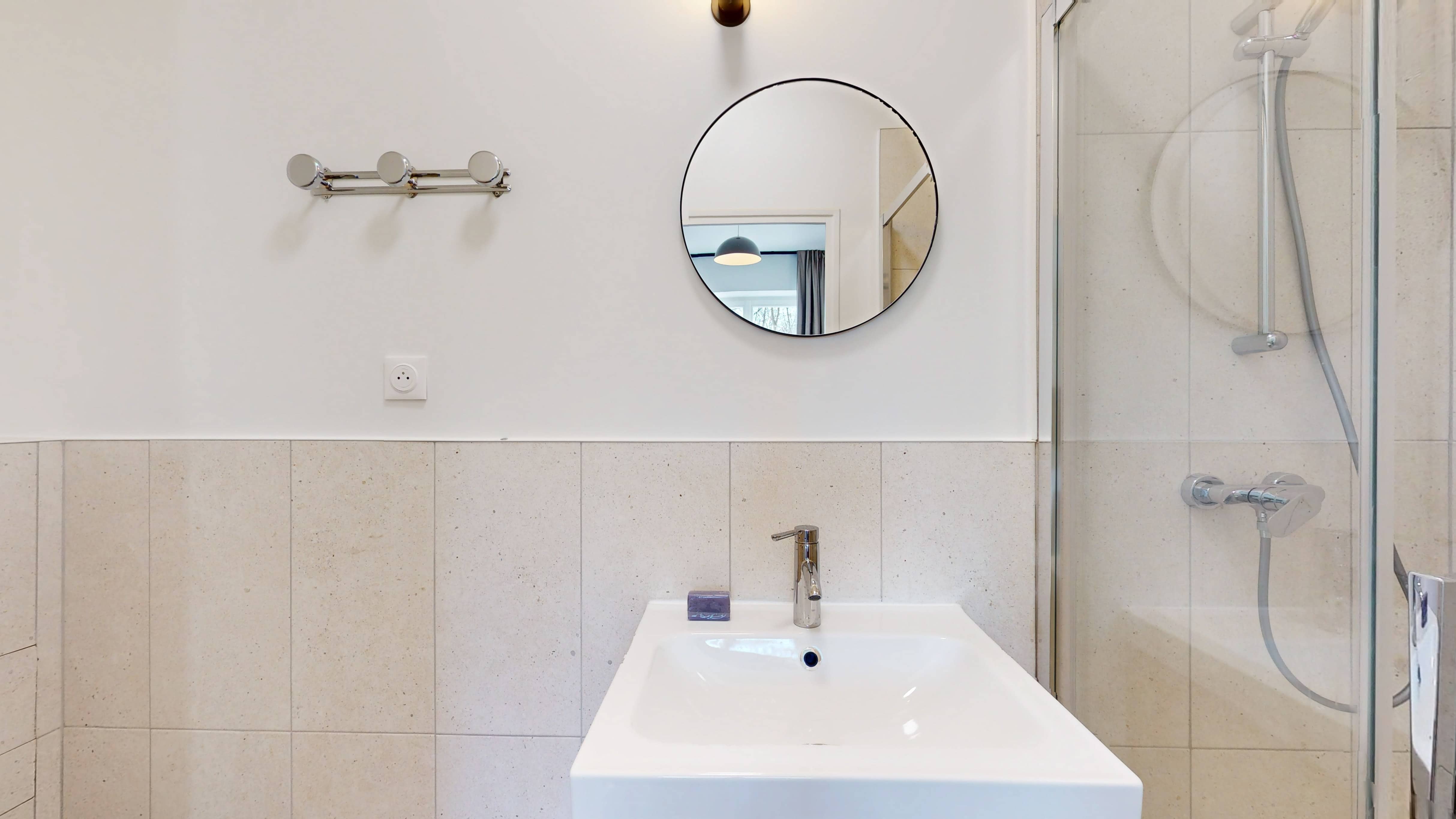 La chambre "Room for one person - 5" est un cocon douillet de 18m2 situé au premier étage. Elle est parfaite pour une personne avec son lit double confortable, son armoire pour ranger vos affaires, un bureau et une chaise pour travailler ou étudier. La salle de bain privative est équipée d'une douche moderne pour se rafraîchir en toute intimité. De plus, la chambre bénéficie d'un accès direct à une terrasse où l'on peut profiter d'une vue dégagée.