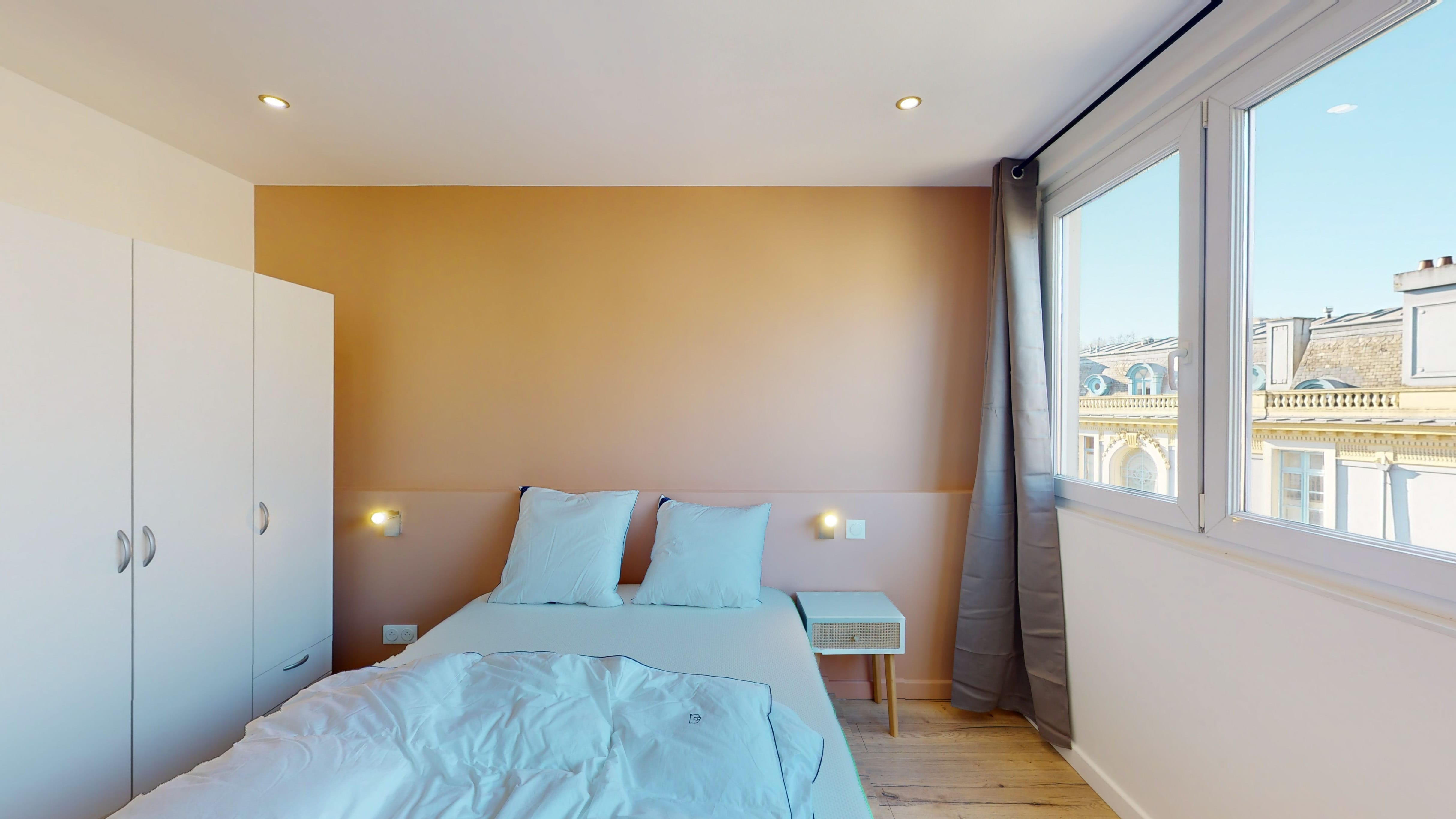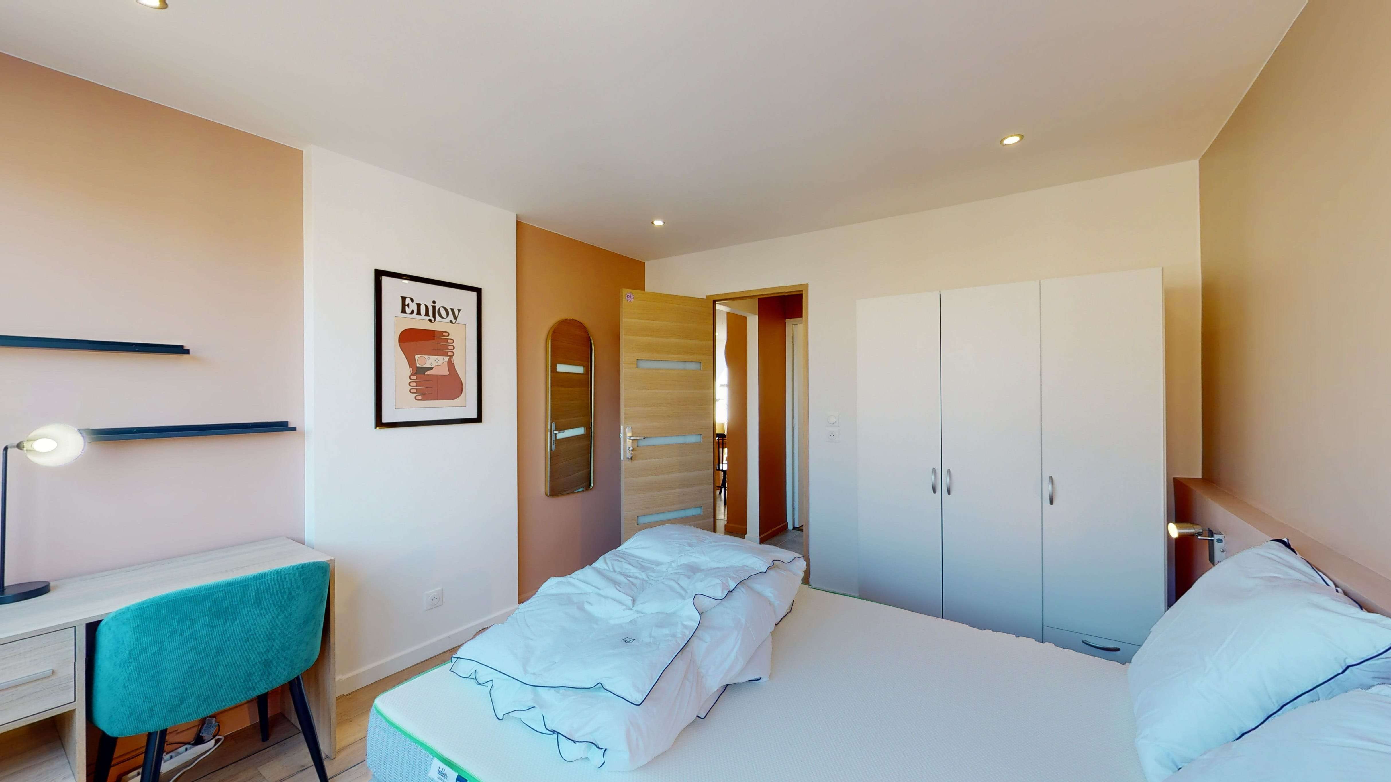 La chambre "Room 1" est conçue pour une personne. Elle est meublée avec un lit double confortable, une armoire pour vos vêtements, une chaise et un bureau pour travailler ou étudier. La chambre mesure 12 mètres carrés et partage une salle de bain moderne avec douche avec les autres locataires.