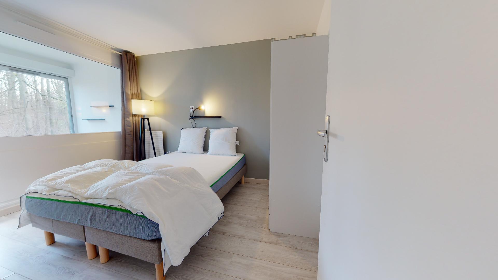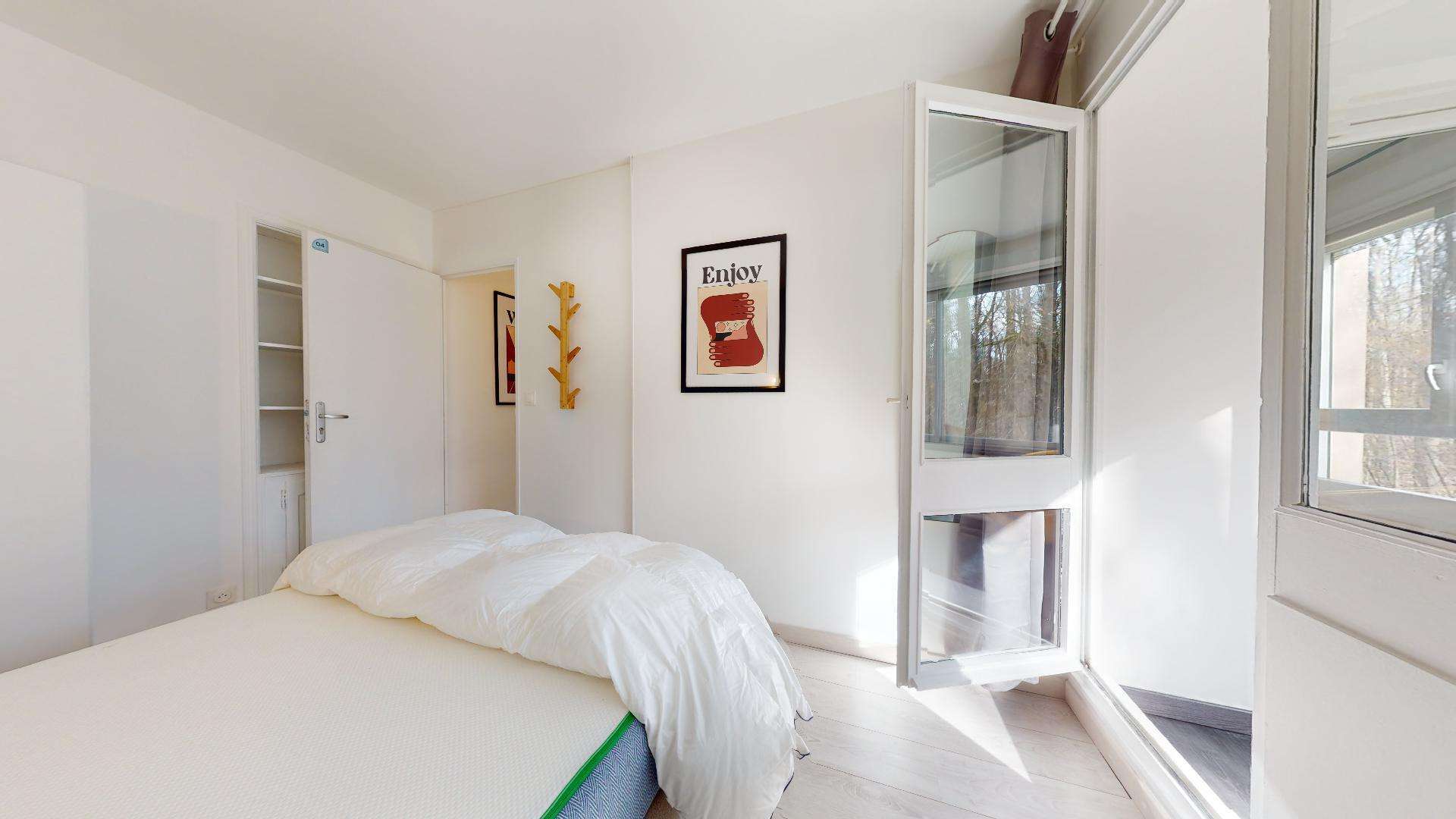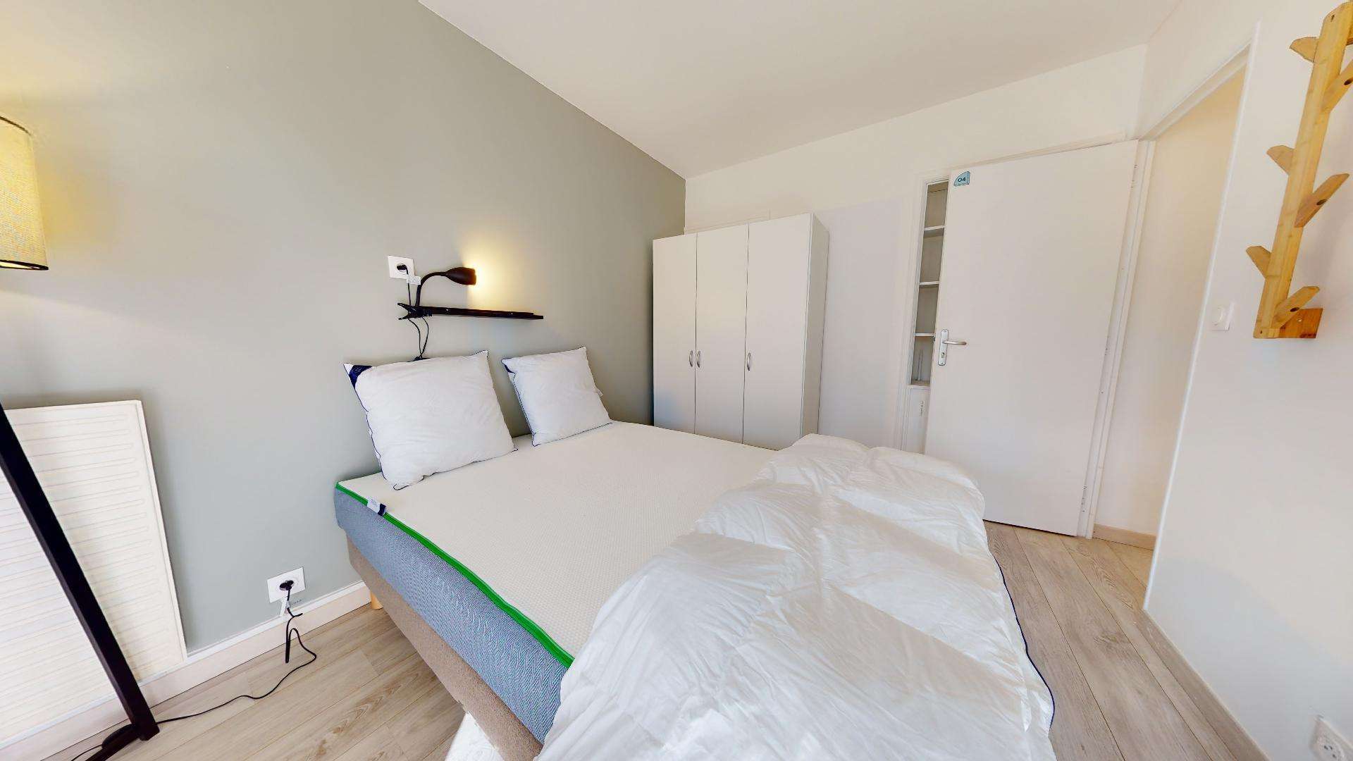 Room 4 est conçue spécialement pour vous. D'une superficie de 15 m², elle offre un lit double confortable, une armoire pour vos affaires, un bureau avec chaise pour étudier ou travailler, et partage une salle de bain bien équipée avec douche. C'est l'espace idéal pour se reposer après une journée bien remplie.