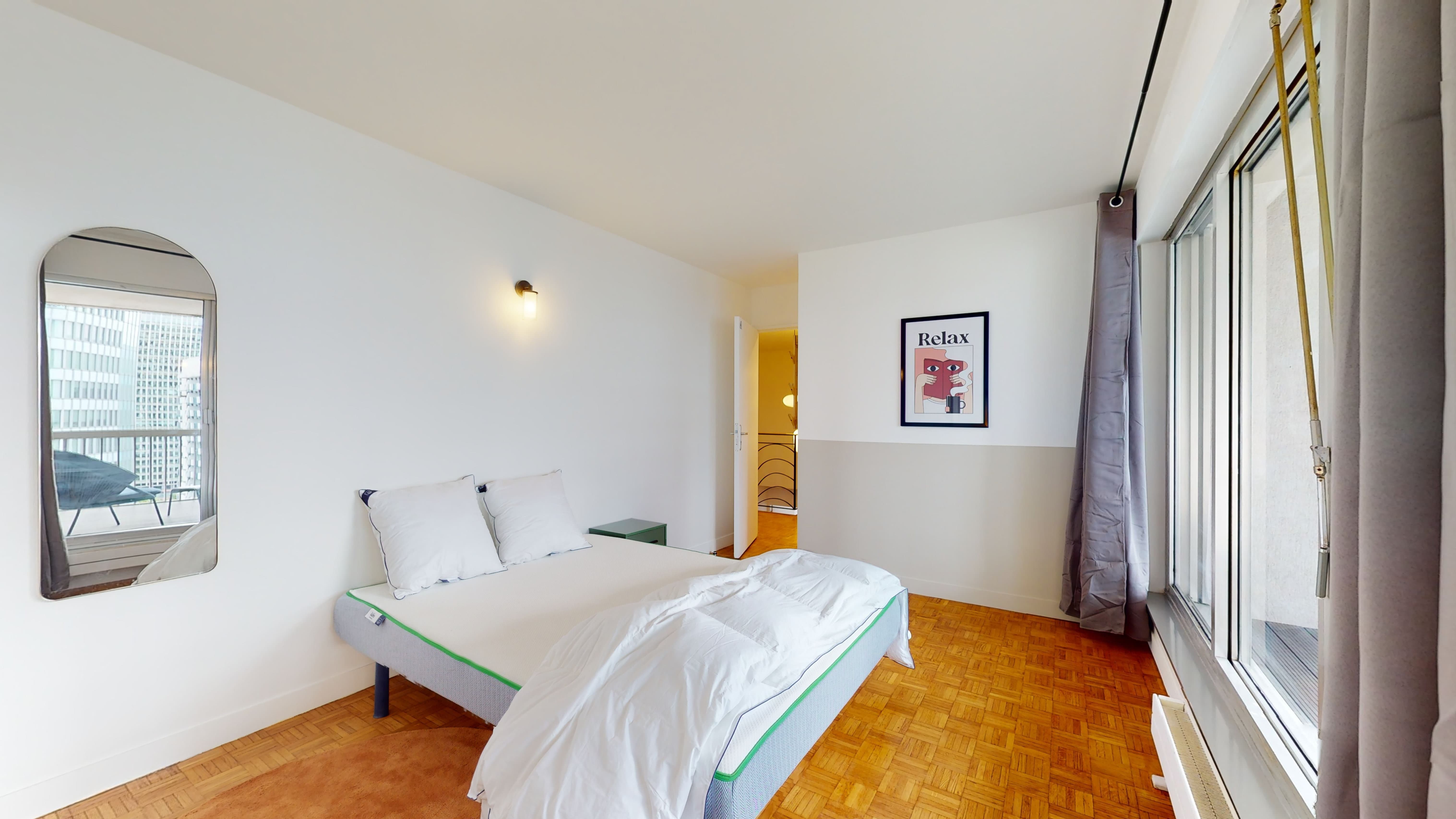 Situé dans un quartier dynamique, vous trouverez à proximité des commerces, des restaurants et des espaces verts. Pour vos déplacements, la station de métro Esplanade de La Défense (ligne M1) est à seulement 5 minutes à pied, et l'arrêt de bus Alsace (lignes 73, 174, N24) est à 2 minutes. Ces transports vous permettent de rejoindre facilement le centre-ville ou d'autres destinations.