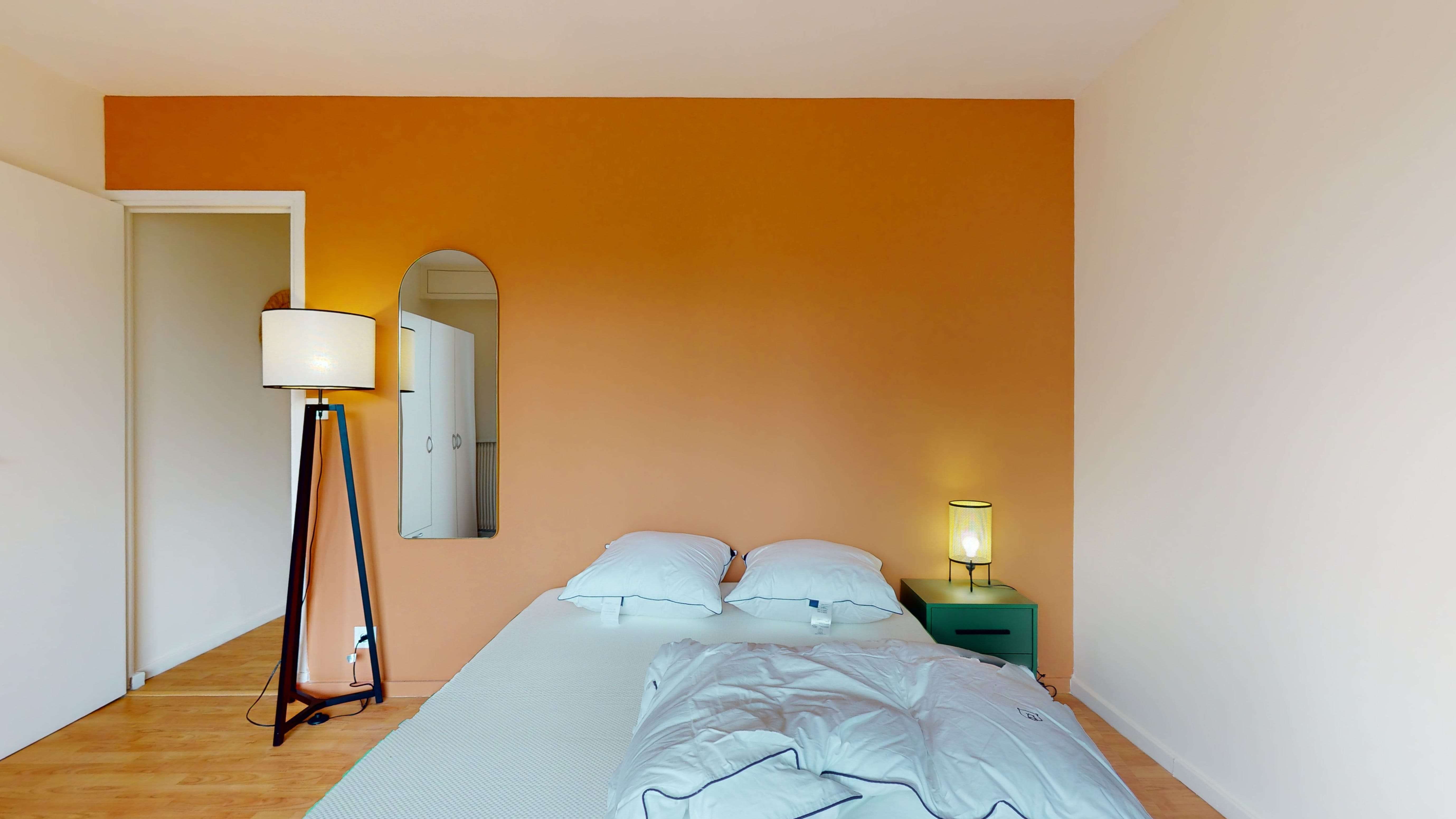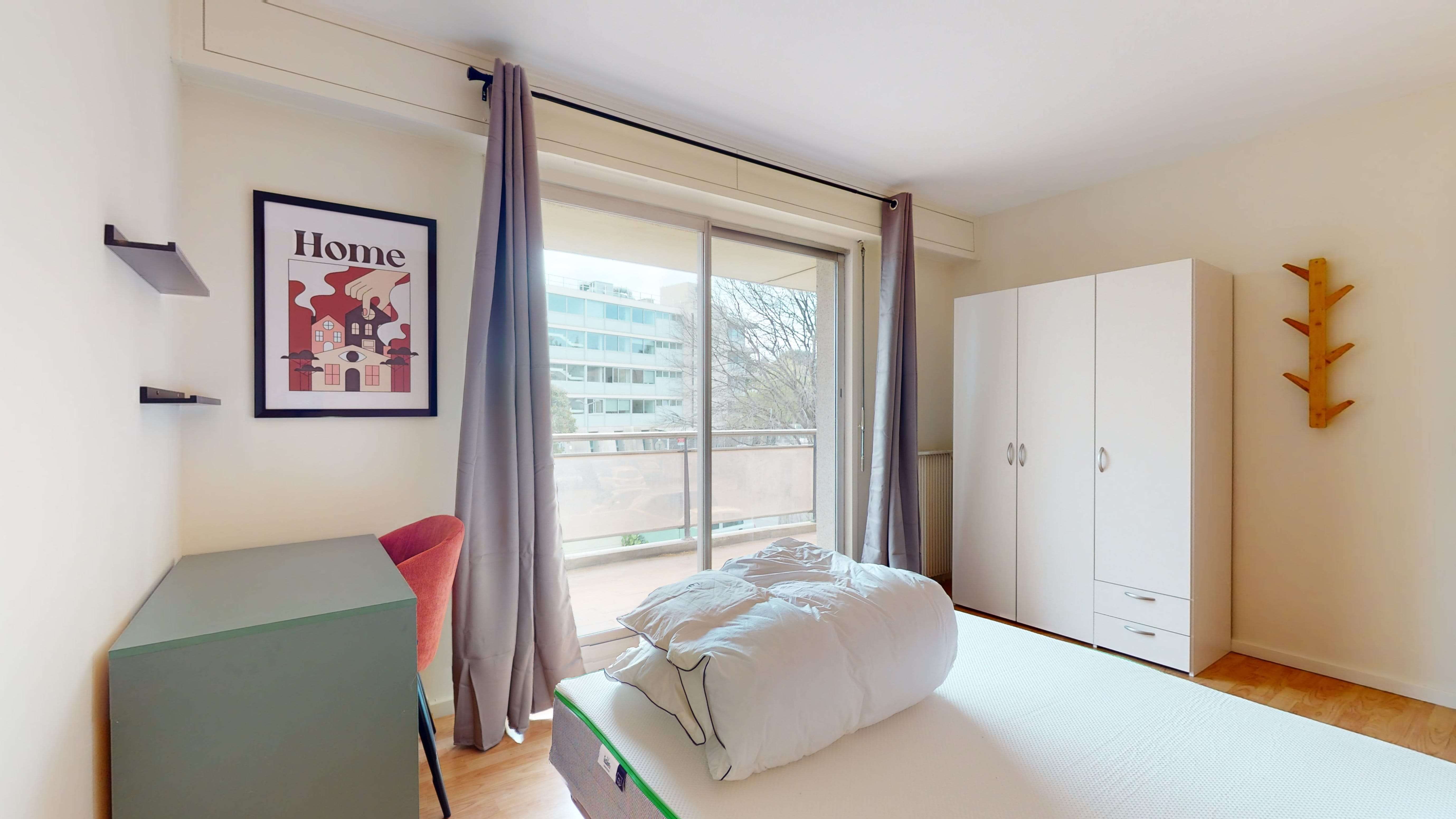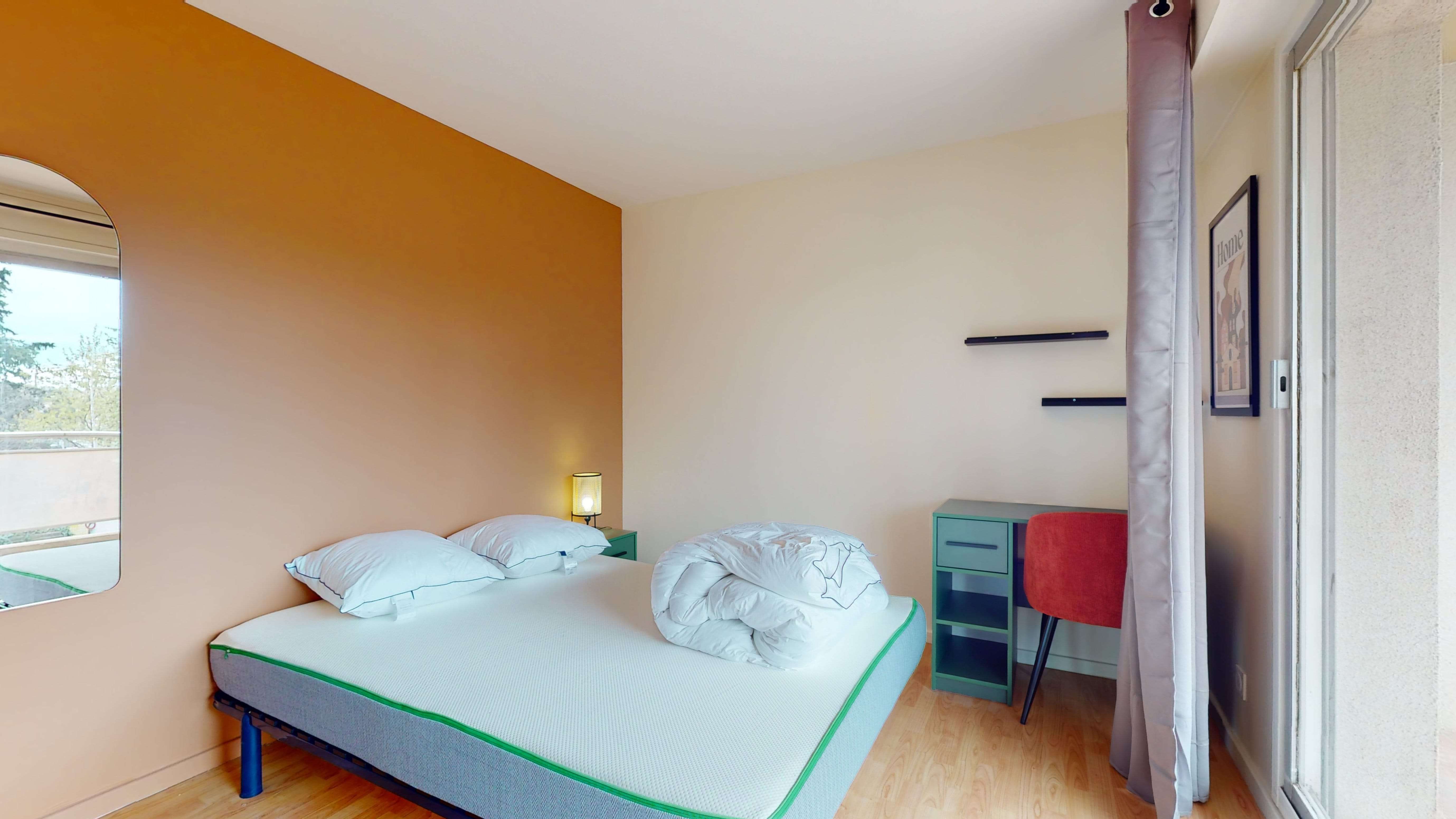La chambre que nous proposons est faite pour une personne. Elle a un grand lit confortable pour bien dormir, une armoire pour vos vêtements, et un bureau pour travailler ou étudier. Vous partagerez la salle de bain avec d'autres personnes. Et la chambre a aussi un balcon rien que pour vous.