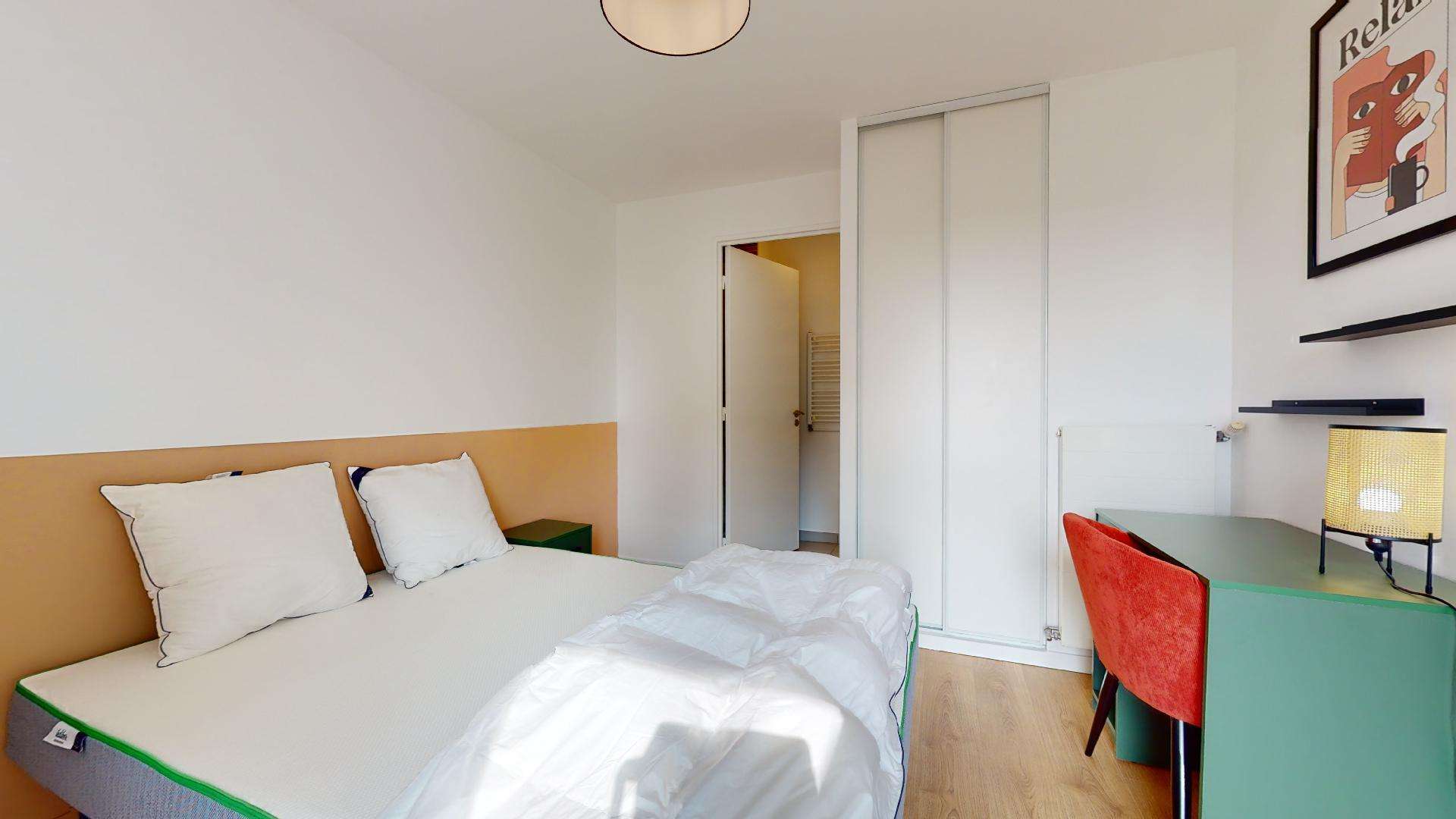 La chambre à louer, nommée Room 4, est parfaite pour une personne. Avec ses 12 m², elle offre un lit double confortable, une armoire pour vos affaires et un bureau pour travailler. Un plus non négligeable : vous aurez votre propre salle de bain privée avec douche et toilettes.