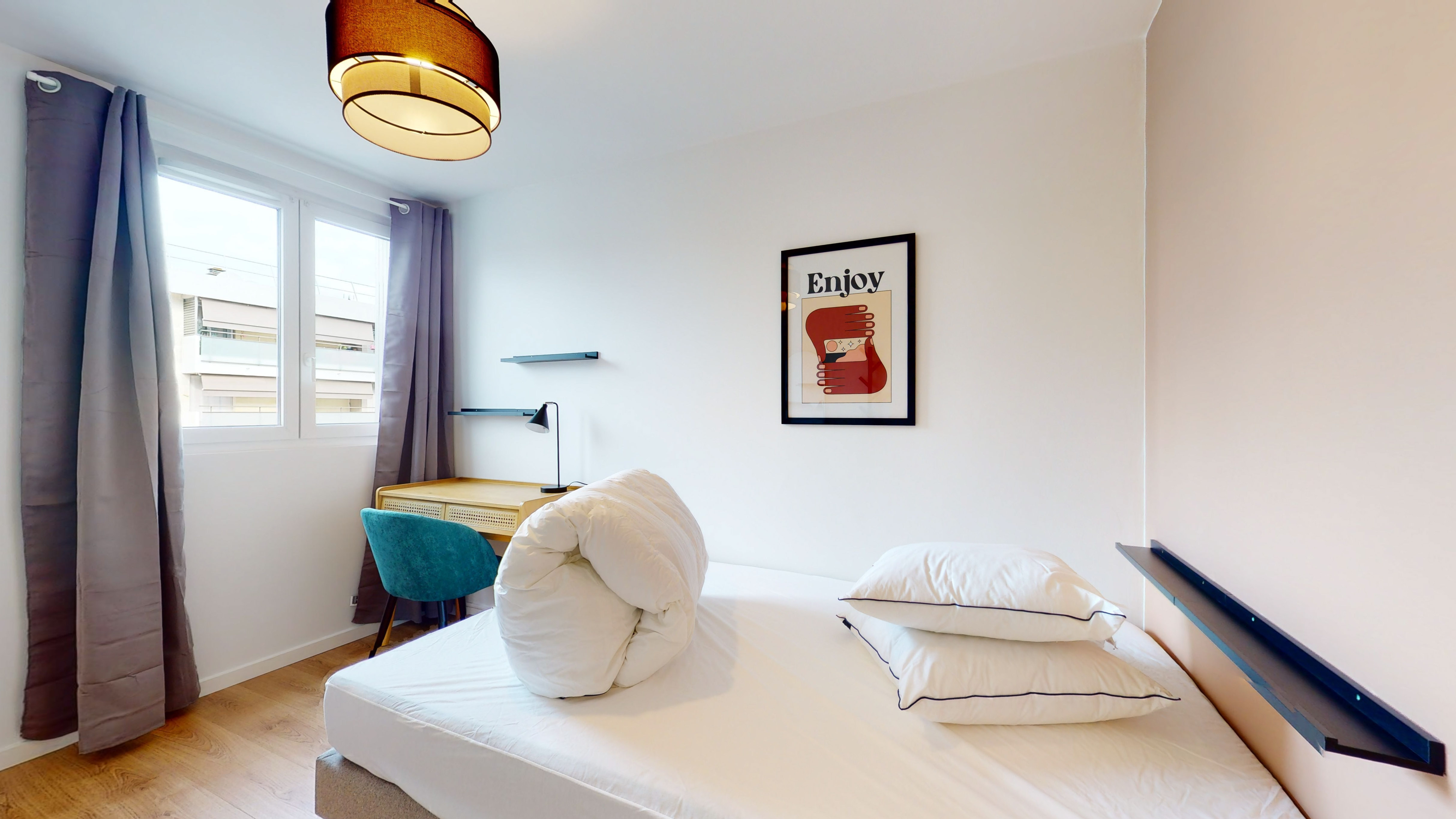 Découvrez une colocation conviviale dans un appartement fonctionnel et bien aménagé. L'espace commun comprend une cuisine équipée pour préparer vos repas, une buanderie pratique pour vos lessives, et un séjour lumineux avec accès à un grand balcon pour se détendre. L'ambiance est chaleureuse et idéale pour des étudiants ou jeunes professionnels.