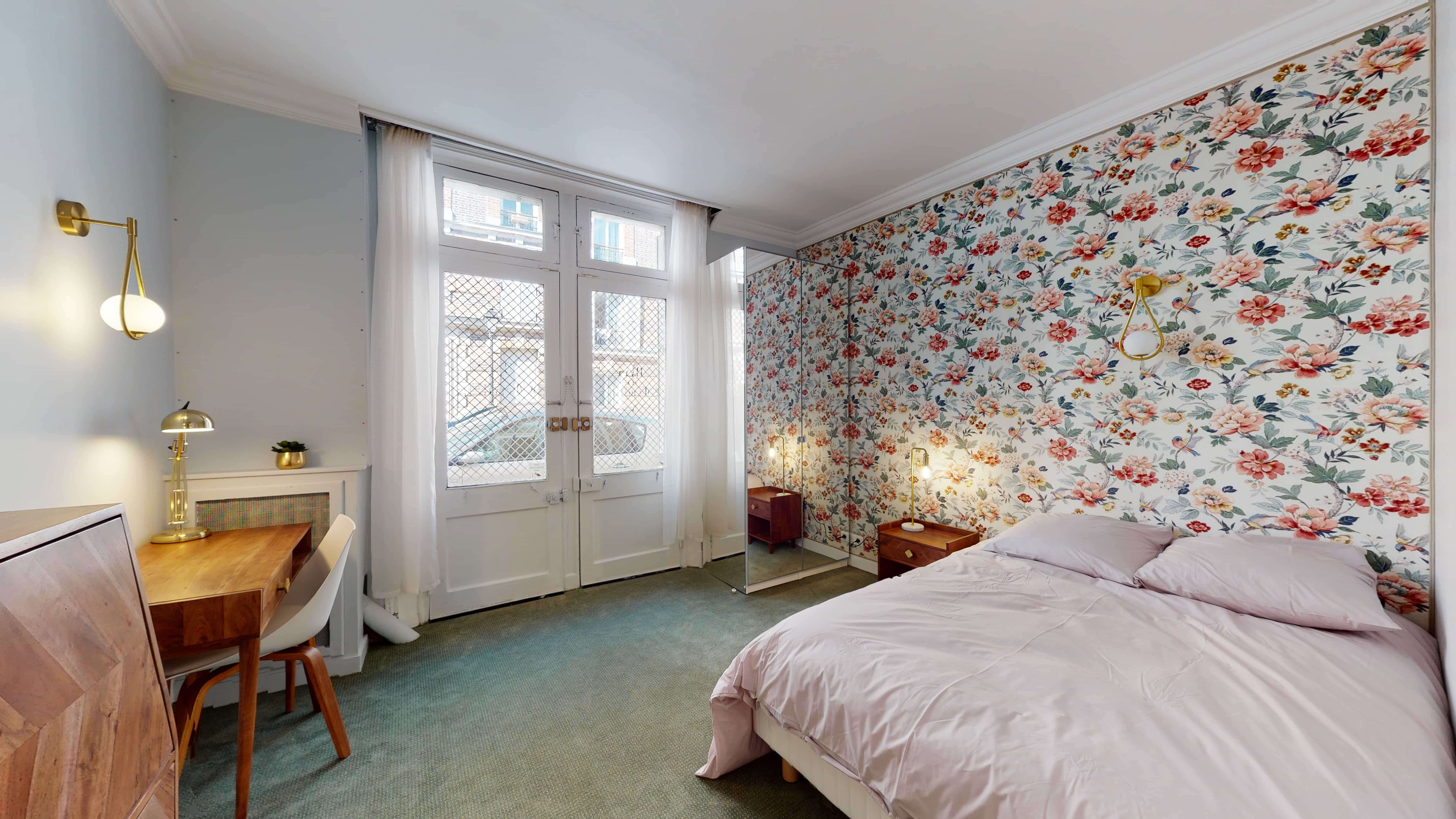 Votre chambre privative, située au rez-de-chaussée, est un véritable cocon personnel. Elle est équipée d'un lit confortable avec rangement intégré, d'un bureau pour vos études ou travail, d'une penderie pour vos vêtements, et d'un fauteuil pour vous relaxer. Vous bénéficiez également d'une salle de bain privée avec douche. Pour plus de commodité, la chambre inclut un mini frigo, un micro-onde et de la vaisselle.