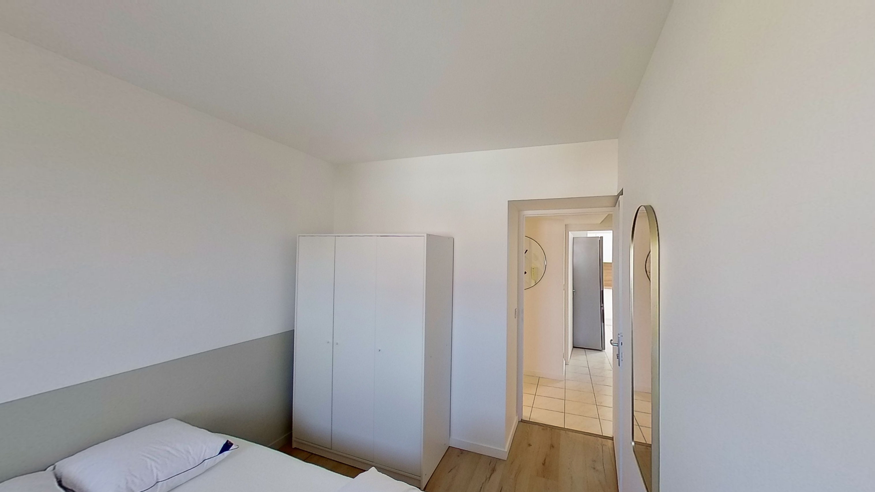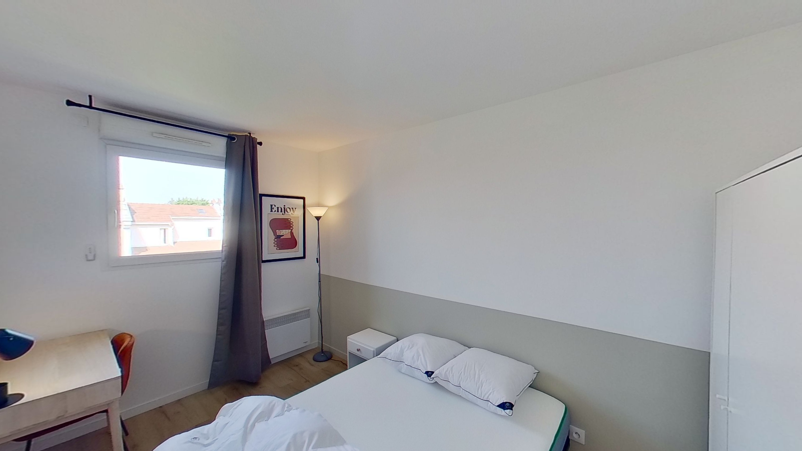 Room 2 est prête à vous accueillir. Elle a un grand lit douillet, une armoire pour vos affaires, et un espace de travail avec un bureau et une chaise. La chambre partage une salle de bain propre et moderne avec d'autres colocataires.