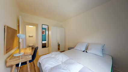 Room 3 est prête à vous accueillir ! Parfaite pour une personne, elle a un grand lit douillet, une armoire pour vos affaires, un bureau pour travailler et une chaise. Vous partagerez une salle de bain propre avec douche et toilettes avec les autres colocataires. C'est votre petit coin privé dans notre appartement chaleureux.