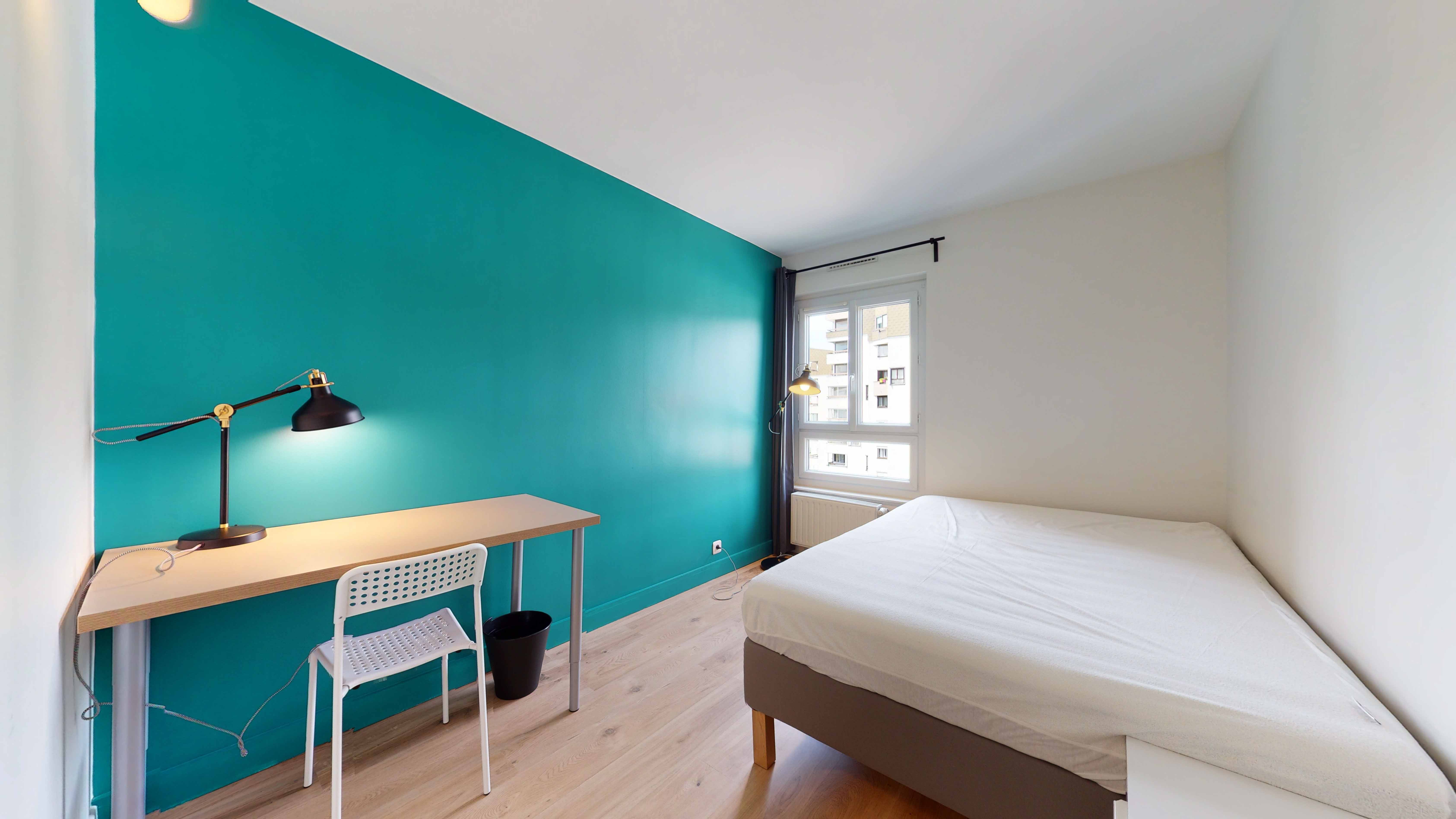 La chambre Room 4, spécialement conçue pour une personne, est un nid douillet de 14m². Elle comprend un lit double confortable avec de la literie de qualité, une armoire pour vos affaires, un bureau avec une chaise et une lampe pour vos études ou votre travail. La chambre bénéficie également d'une salle de bain partagée équipée d'une douche et de toilettes.