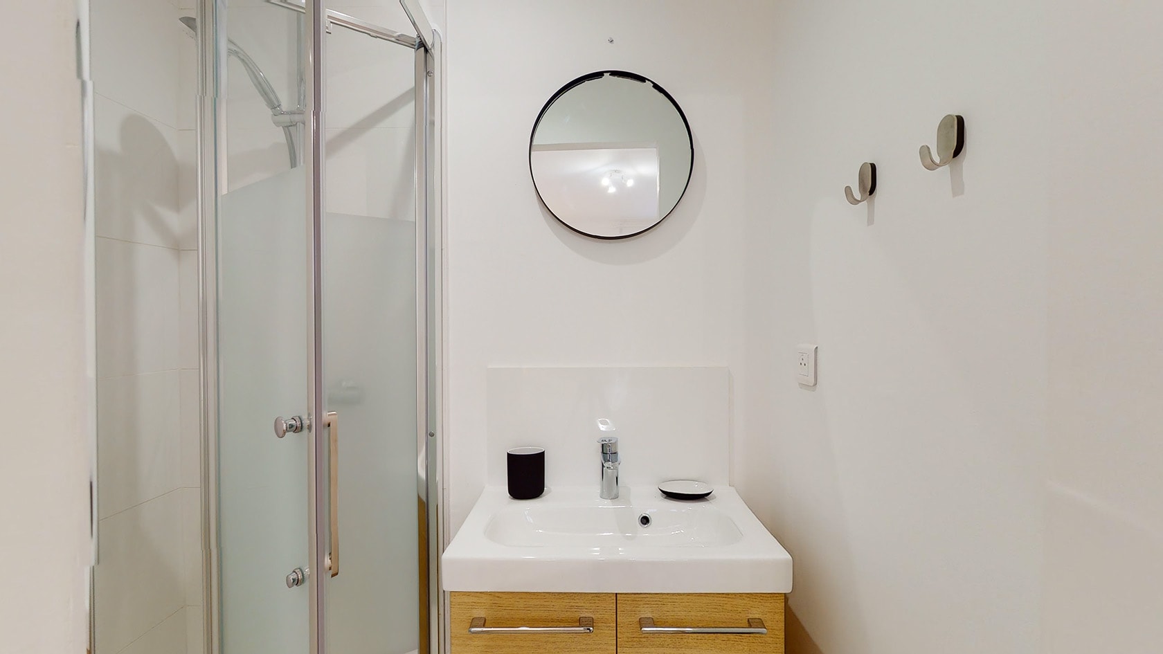 La Chambre 3, située au rez-de-chaussée, est parfaite pour une personne. Elle est meublée d'un lit double confortable avec des draps de qualité, d'une penderie pour vos affaires, d'une table et d'une chaise pour travailler ou étudier. La chambre dispose aussi d'une salle de bain privée avec douche et lavabo. Les toilettes sont partagées avec un autre locataire.