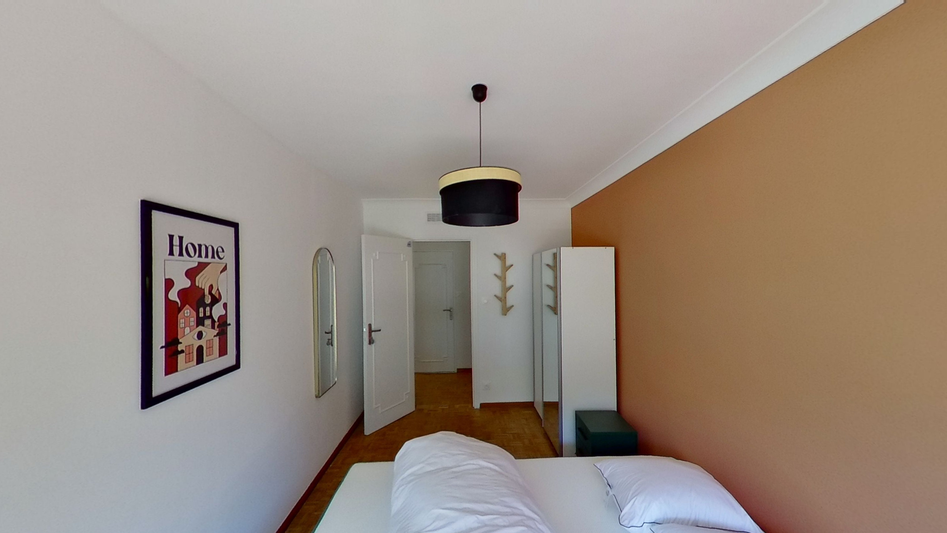 Room 4, votre chambre privée de 13 m², est un petit nid douillet avec tout le nécessaire : un lit double avec une literie de qualité, une armoire pour vos vêtements, un bureau pour étudier ou travailler et une chaise. Elle a aussi un balcon pour profiter de l'air frais. Cette chambre partage une salle de bain propre et moderne avec les autres locataires.
