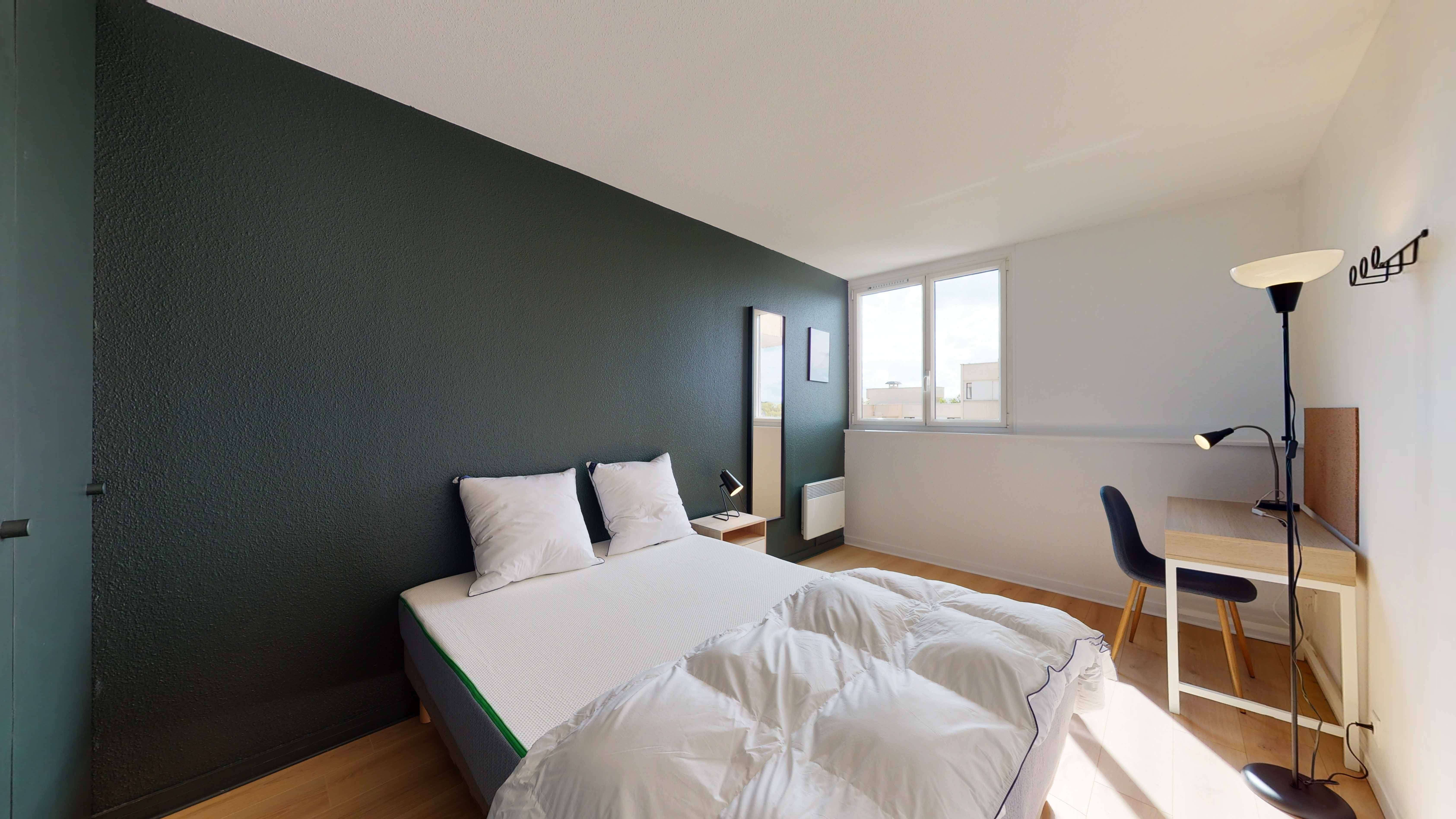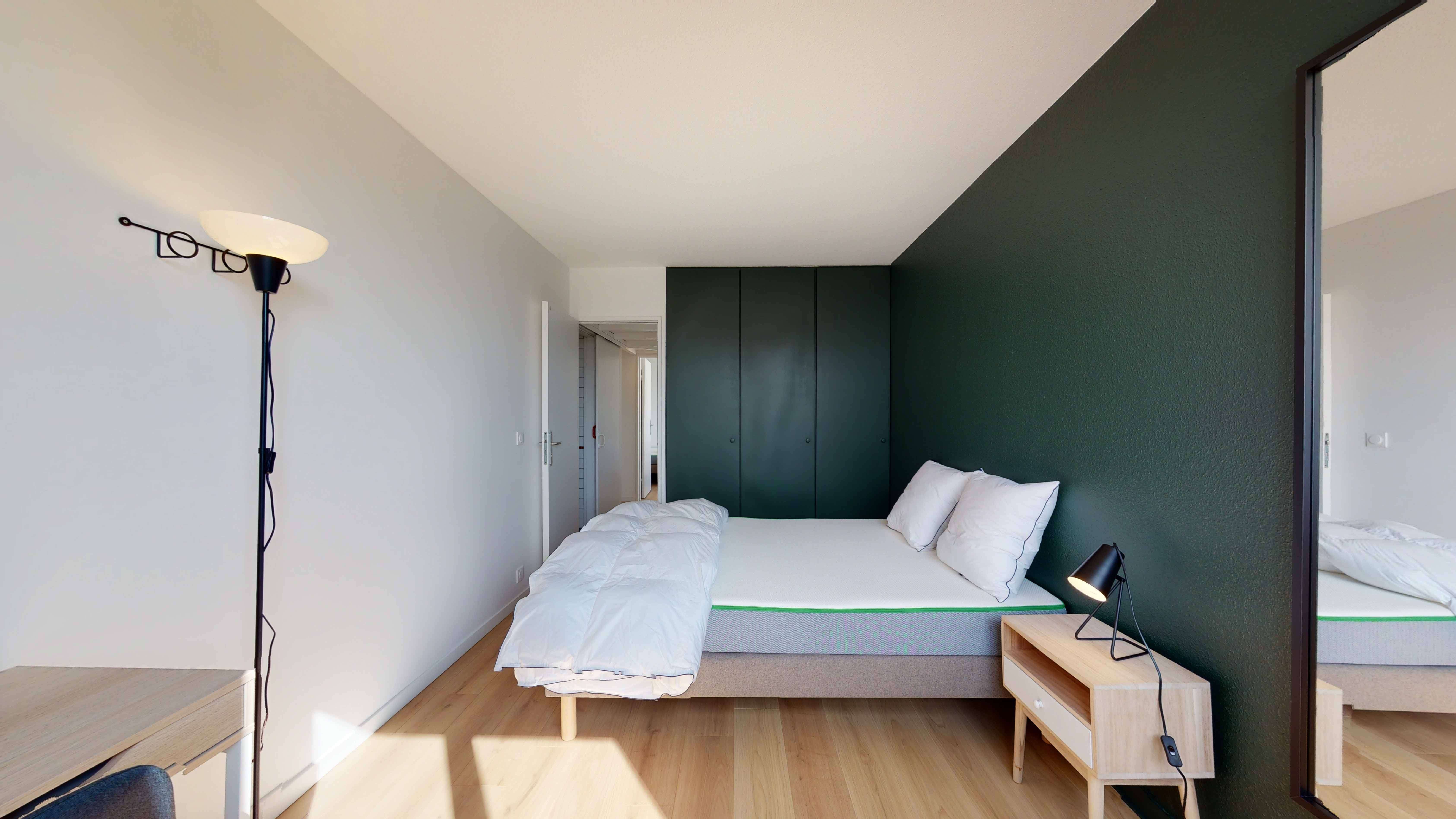 La chambre "Room 3" est un cocon douillet de 11 m² juste pour vous. Elle est meublée d'un lit double confortable avec de la literie de qualité, une armoire pour vos affaires, une chaise, un bureau avec une lampe pour étudier ou travailler, et un radiateur pour garder la pièce bien chaude. La salle de bain est à partager avec d'autres locataires, mais elle est bien équipée avec douche, lavabo et toilettes.