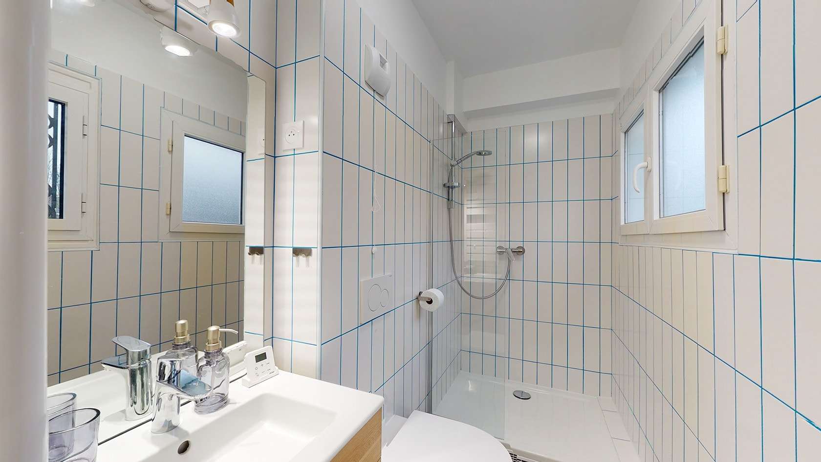 La Chambre 8, située au premier étage, est un cocon parfait pour une personne. Elle est meublée d'un lit double confortable avec rangement intégré, d'une penderie pour vos vêtements, d'une table et d'une chaise pour travailler ou étudier. La chambre bénéficie également d'une salle de bain privée avec douche et lavabo pour votre confort personnel.