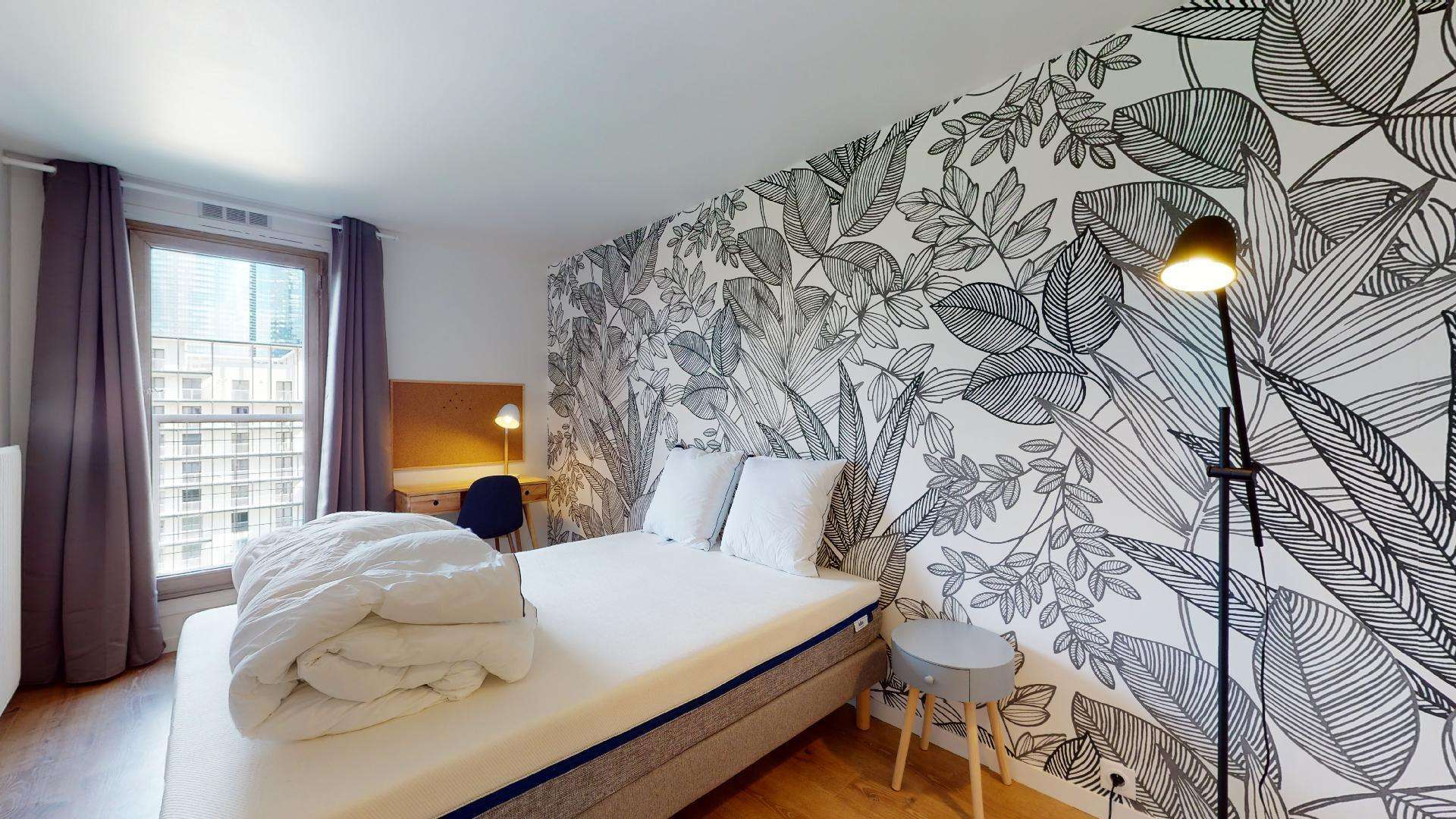La chambre 3 est parfaite pour une personne avec ses 13 mètres carrés bien agencés. Elle est meublée d'un lit double confortable avec de la literie de qualité, d'une armoire pour vos vêtements, ainsi qu'un bureau et une chaise pour travailler ou étudier. La chambre partage une salle de bain bien équipée avec douche, lavabo et toilettes.
