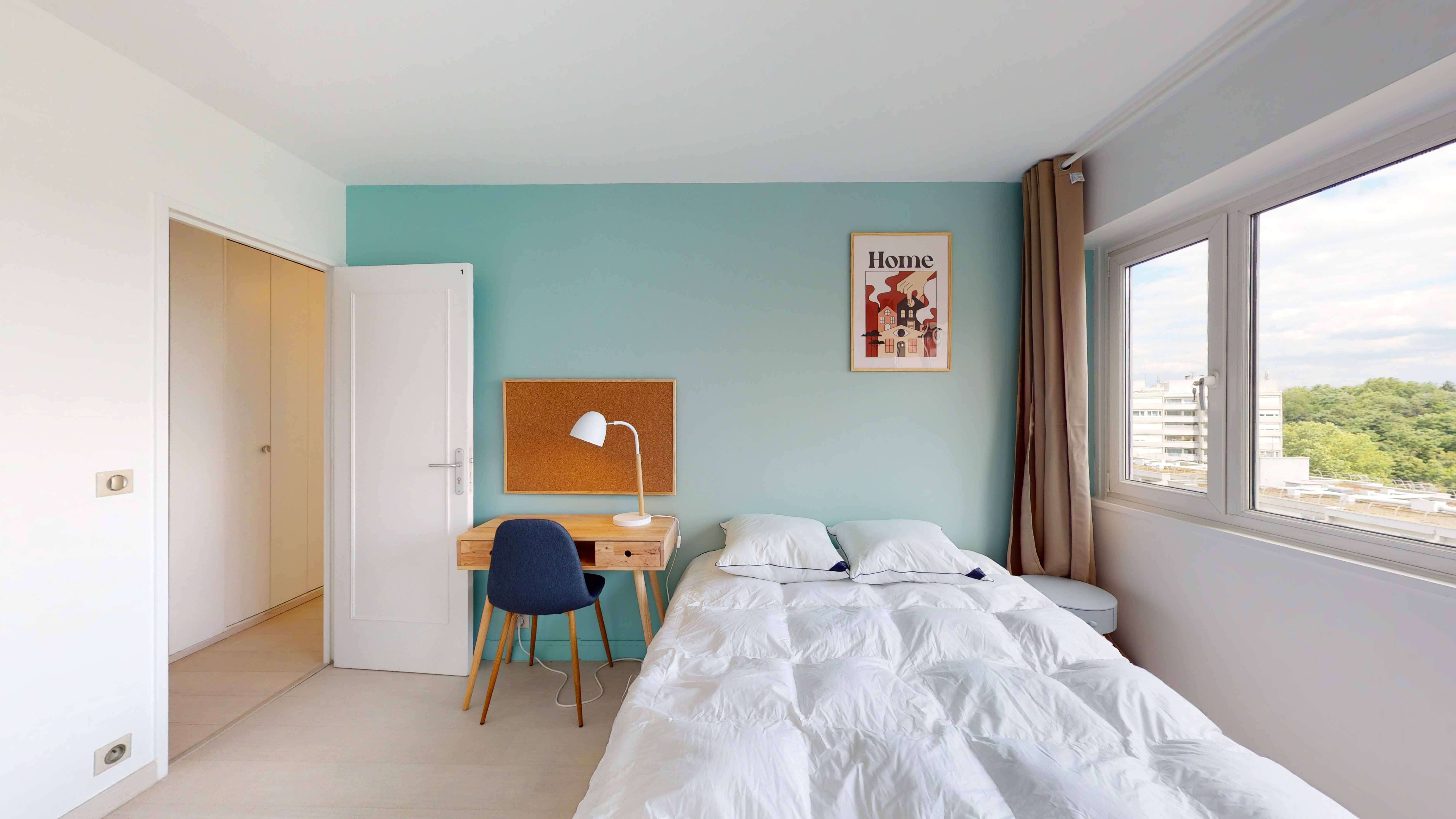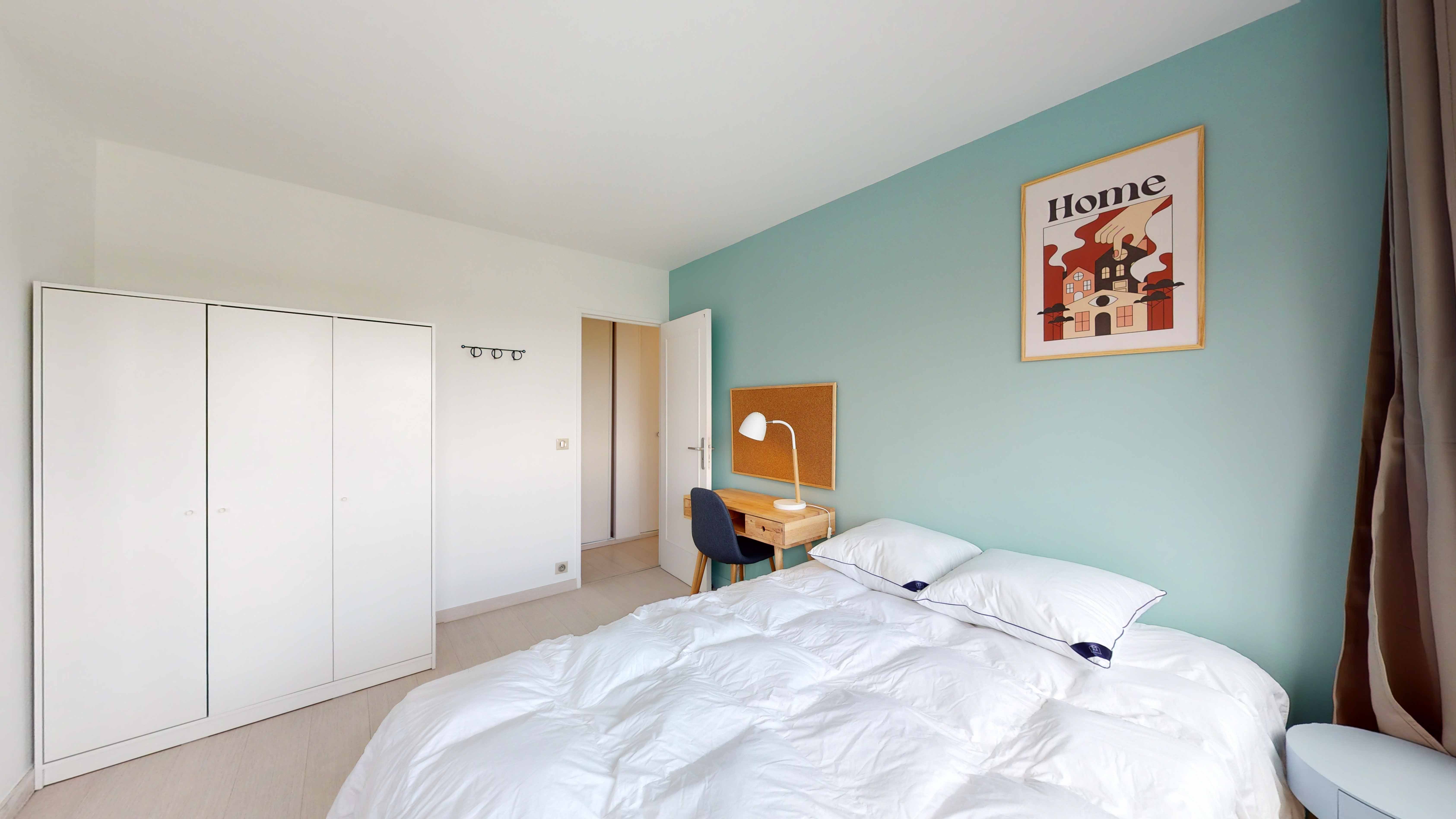 La chambre disponible, Room 1, est un cocon juste pour toi. Ses 11 m² sont bien agencés avec tout ce qu'il faut : un lit double confortable avec de la literie de qualité pour bien dormir, une armoire pour ranger tes affaires, un bureau et une chaise pour étudier ou travailler. Tu partageras une salle de bain propre et pratique avec d'autres colocataires.