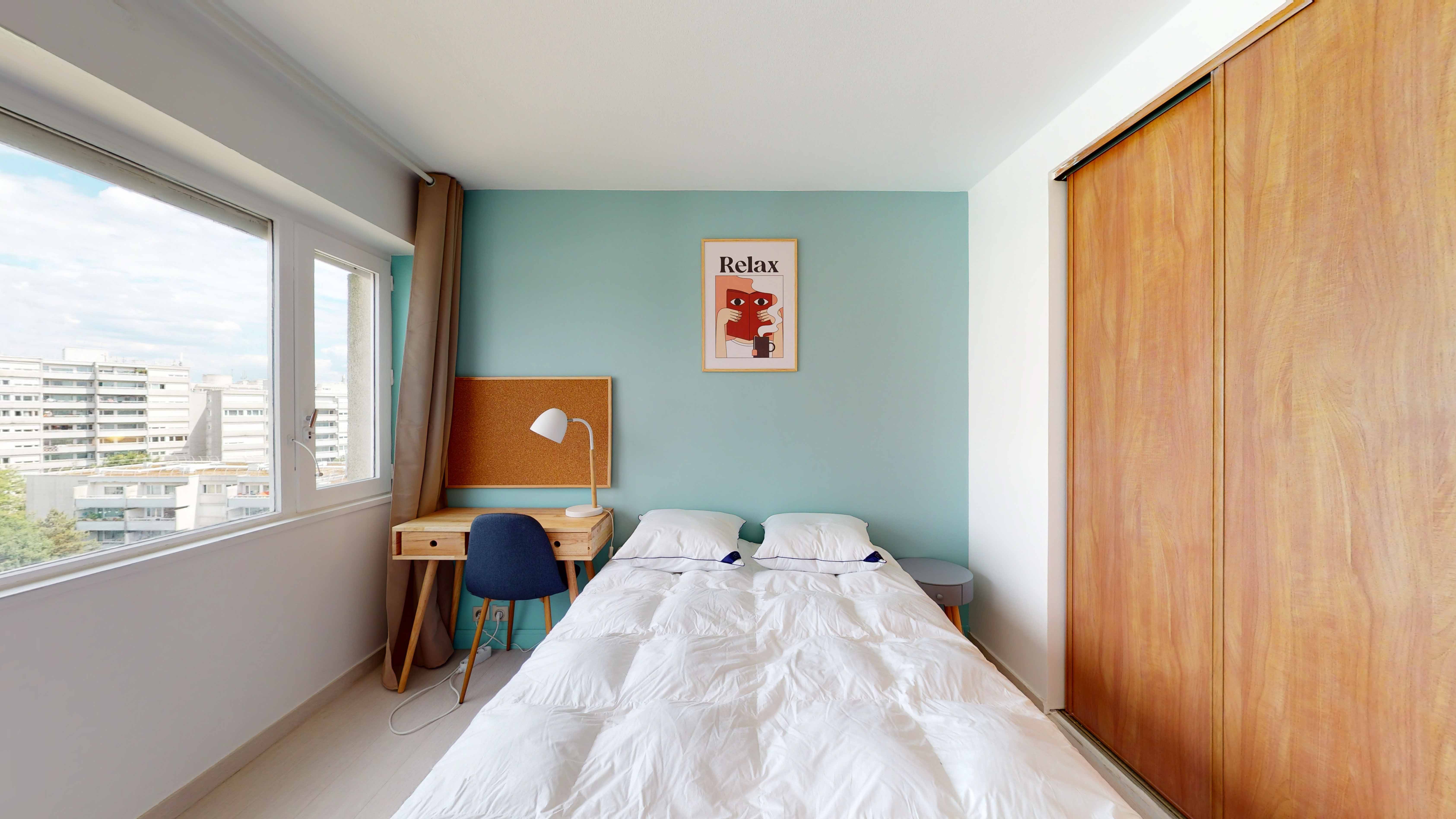 La chambre disponible, Room 2, est un cocon douillet de 11 m² conçu pour une personne. Elle est meublée d'un confortable lit double avec de la literie de qualité, d'une armoire spacieuse pour ranger toutes vos affaires, ainsi que d'une chaise et d'un bureau pour travailler ou étudier dans les meilleures conditions. La chambre partage une salle de bain propre et moderne avec douche et toilettes.