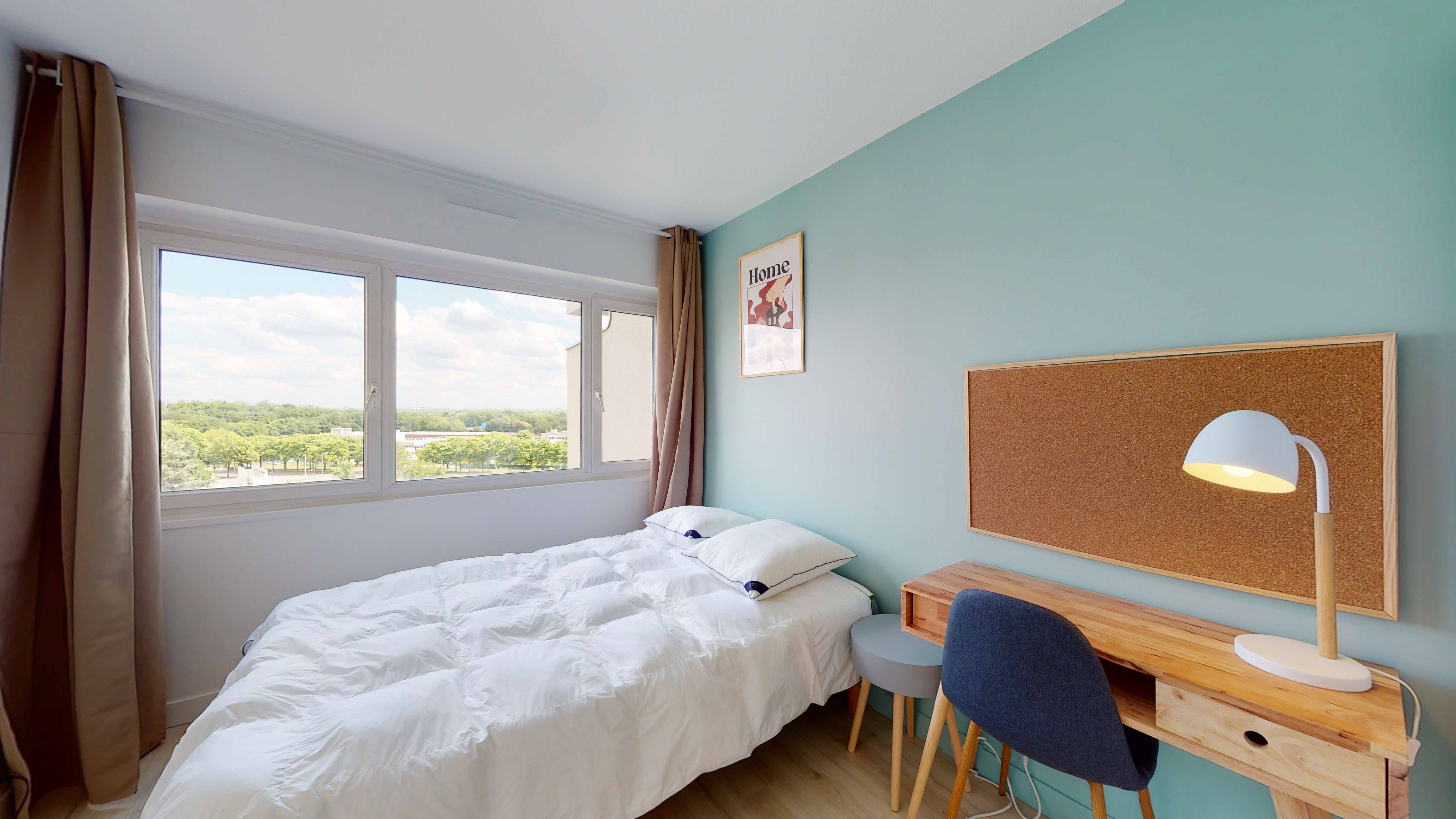 La chambre proposée, Room 4, est un cocon douillet de 10 m² prévu pour une personne. Vous y trouverez un lit double confortable avec de la literie de qualité, une armoire pour ranger vos affaires, ainsi qu'un bureau et une chaise pour étudier ou travailler en toute tranquillité. Cette chambre partage une salle de bain propre et fonctionnelle avec d'autres locataires.