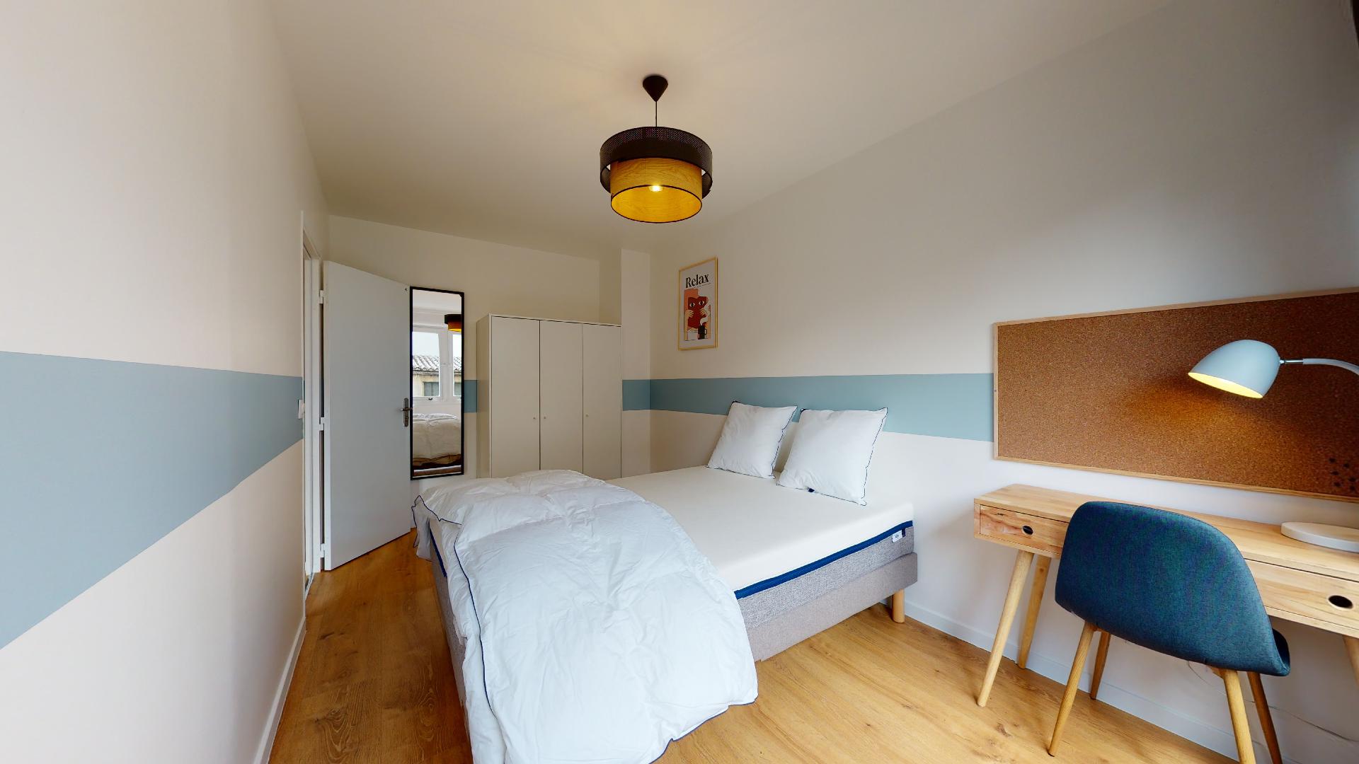 La chambre disponible, nommée Room 4, est un cocon de confort pour une personne. Elle dispose d'un lit double douillet avec une literie de qualité, d'une armoire pour vos affaires, ainsi que d'un bureau et d'une chaise pour étudier ou travailler en toute tranquillité. La chambre partage une salle de bain propre et pratique avec d'autres locataires.
