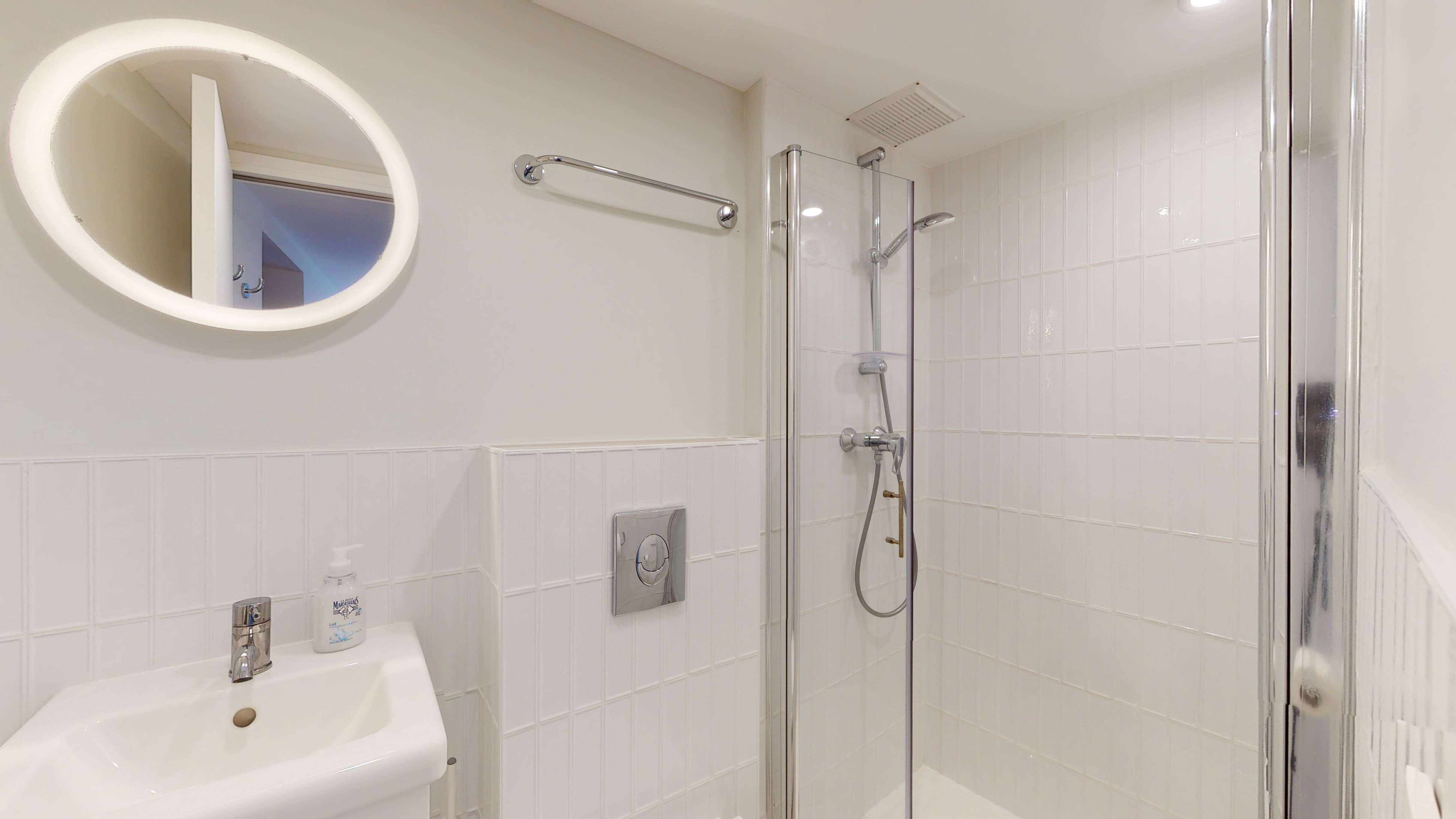 La chambre "Room for one person - 8" est un cocon parfait pour une personne. Située au rez-de-chaussée, elle dispose de tout le nécessaire : un lit double confortable, une armoire pour vos affaires, un bureau et une chaise pour travailler ou étudier, ainsi qu'un radiateur pour rester au chaud. La salle de bain privée est équipée d'une douche moderne pour votre confort.