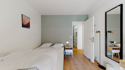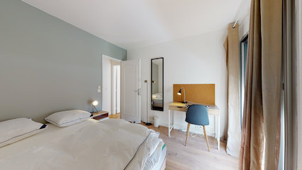 Room 2 est la chambre idéale pour une personne qui cherche son petit cocon personnel. Avec ses 9 m², elle est dotée d'un lit double confortable, d'une armoire pour vos affaires, d'un bureau propice au travail ou à l'étude et d'une chaise. Vous bénéficierez également d'une salle de bain privative avec douche et toilettes. Et pour des moments de détente en plein air, vous avez un accès direct à un balcon privé.