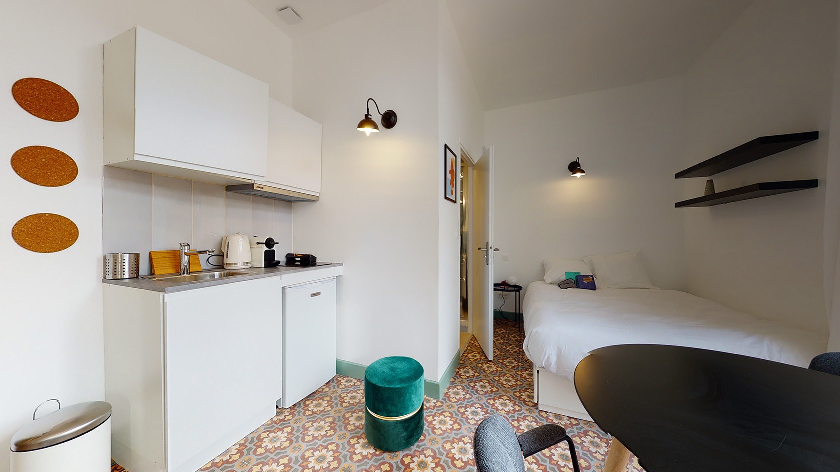Bienvenue à la résidence Zenith, un espace de coliving chaleureux et convivial. Avec ses 460m2 répartis sur trois niveaux, cette maison offre dix-huit unités privatives et des espaces communs où il fait bon vivre. Au rez-de-chaussée, profitez d'une salle de projection pour vos soirées cinéma, d'une cuisine équipée ouverte sur la salle à manger pour partager des repas conviviaux, et d'un espace buanderie complet. À l'extérieur, détendez-vous dans le grand jardin arboré de 900m². Et si vous avez une voiture, un stationnement est disponible pour un petit supplément.