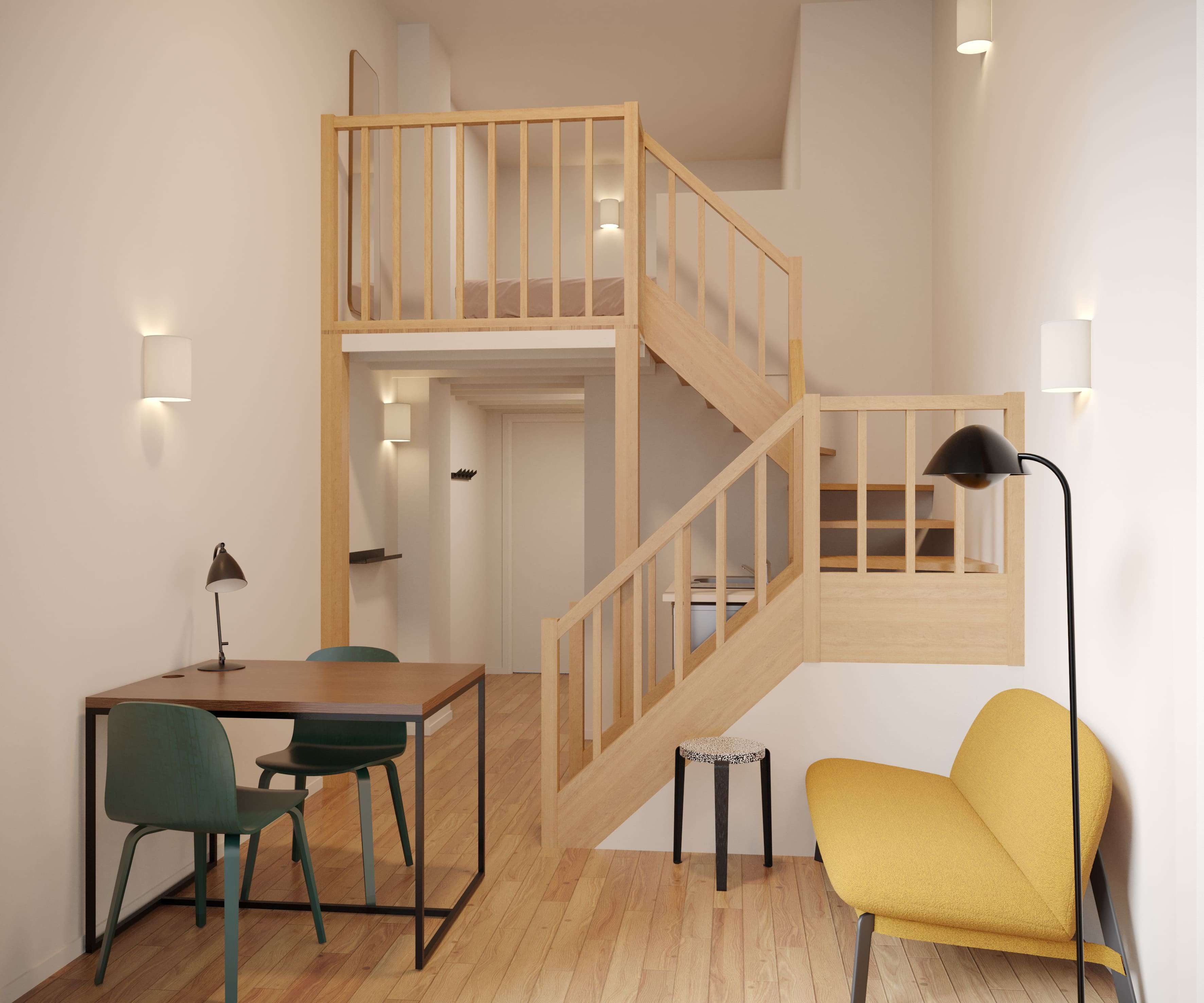 Le Studio S - 176, situé au 1er étage, est un espace privé et bien agencé de 13 m2, conçu spécialement pour une personne. Il comprend une salle de bain privée et un bloc hôtel privé avec tout le nécessaire : mini frigo, micro-ondes, évier, ustensiles de cuisine et vaisselle. Le studio est également équipé d'un lit confortable avec des rangements intégrés, d'un bureau et d'une chaise pour travailler, ainsi que d'une penderie pour vos vêtements.