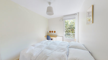 La chambre 3 est juste ce qu'il faut pour une personne. Elle a un grand lit confortable, une armoire pour tes vêtements, un bureau pour travailler et une chaise. Tu auras aussi une lampe de chevet pour lire le soir et un chauffage pour rester au chaud. La salle de bain est à partager avec les autres, mais elle a tout ce qu'il faut : une douche, un lavabo et des toilettes.