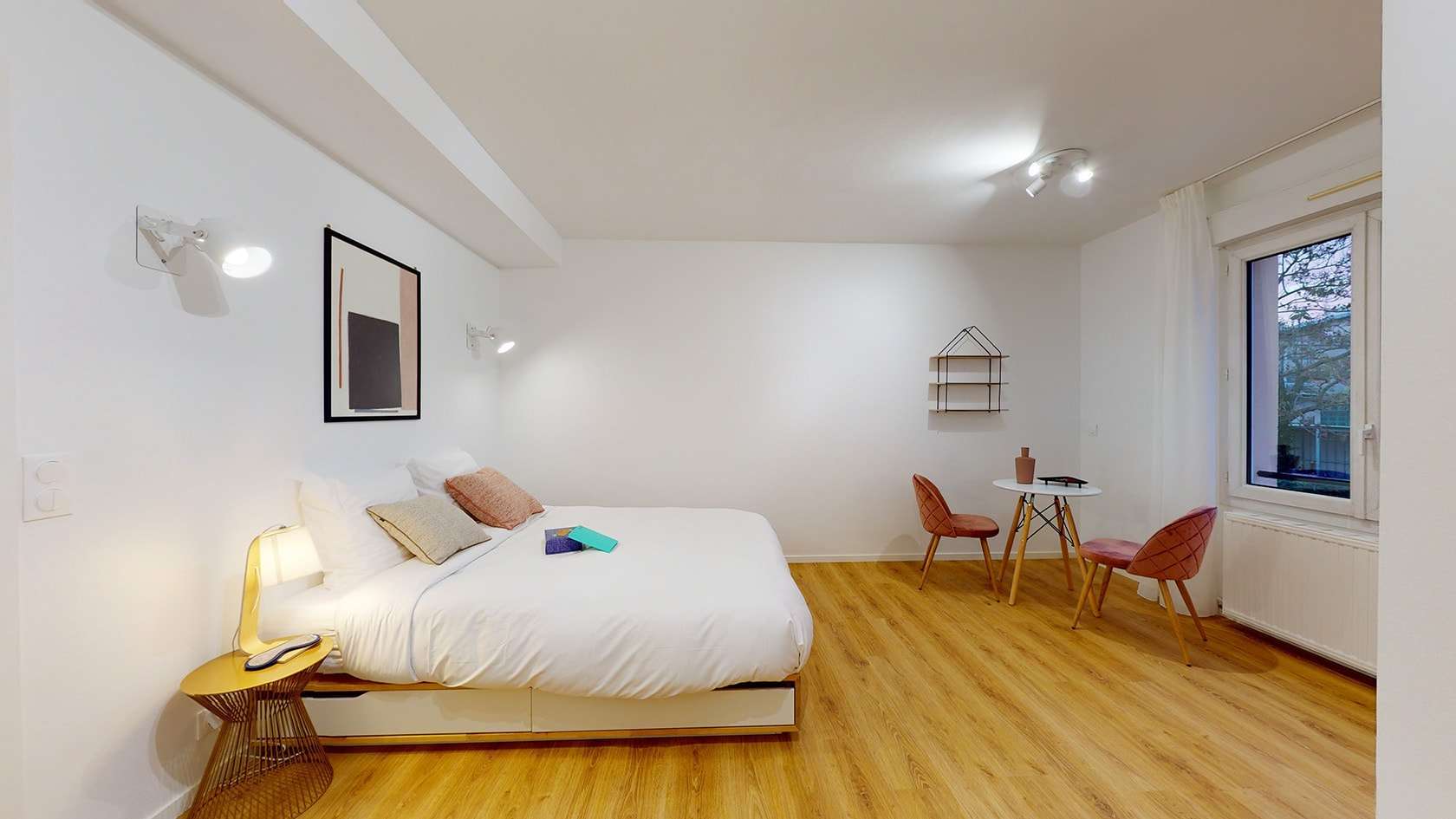Découvrez la résidence Yves, un espace de coliving convivial et moderne de 320m². Cette maison offre dix studios privés répartis sur quatre niveaux, tous accessibles par des escaliers. Les espaces communs sont un véritable lieu de vie partagé : profitez d'une salle de fitness pour garder la forme, d'une salle de divertissement pour vos soirées cinéma, et d'une buanderie équipée pour faciliter votre quotidien. Le rez-de-chaussée est un espace ouvert avec une cuisine équipée, une salle à manger et un salon cosy, sans oublier la véranda et le jardin végétalisé pour des moments de détente en plein air.