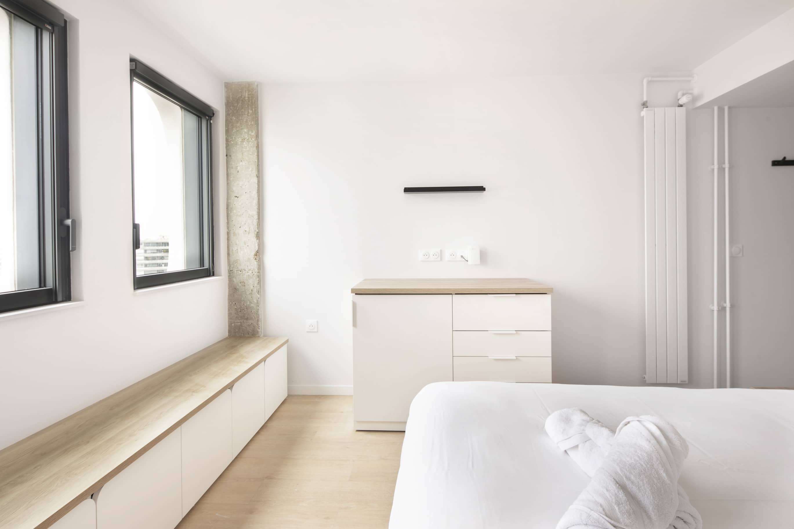 Bienvenue à La Résidence Jumo Home 1101, un espace de coliving moderne et convivial qui s'étend sur 400m2. Avec ses 96 logements privés répartis sur dix étages, cette résidence offre une expérience de vie partagée unique. Les espaces communs sont conçus pour favoriser les rencontres et les échanges entre résidents : détendez-vous dans l'un des salons, préparez vos repas dans les cuisines équipées, ou gardez la forme dans la salle de fitness. Profitez également de la terrasse spacieuse pour admirer la vue et vous ressourcer.