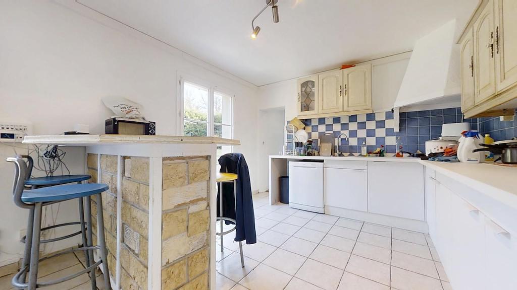 La cuisine s'ouvre sur un grand jardin, idéal pour profiter de l'extérieur en toute saison.