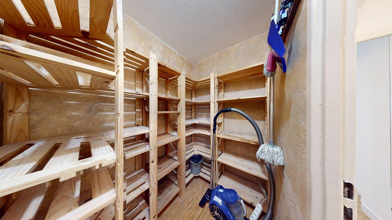 Un cellier avec étagères permet de bénéficier de rangements supplémentaires très appréciables.