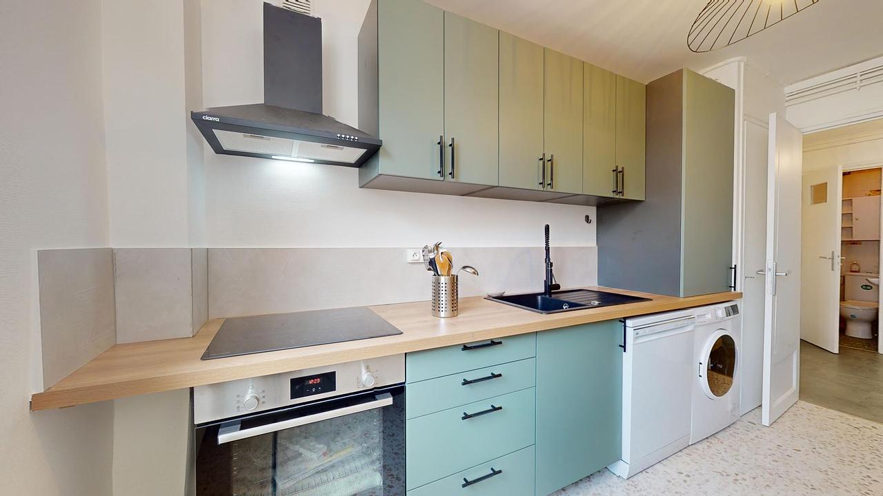 Cette colocation est idéalement située en plein cœur de la jeune et dynamique commune de Villeurbanne, à deux pas des commerces (supermarché en face de l'immeuble) et des espaces de loisirs (cinéma au bout de la rue).