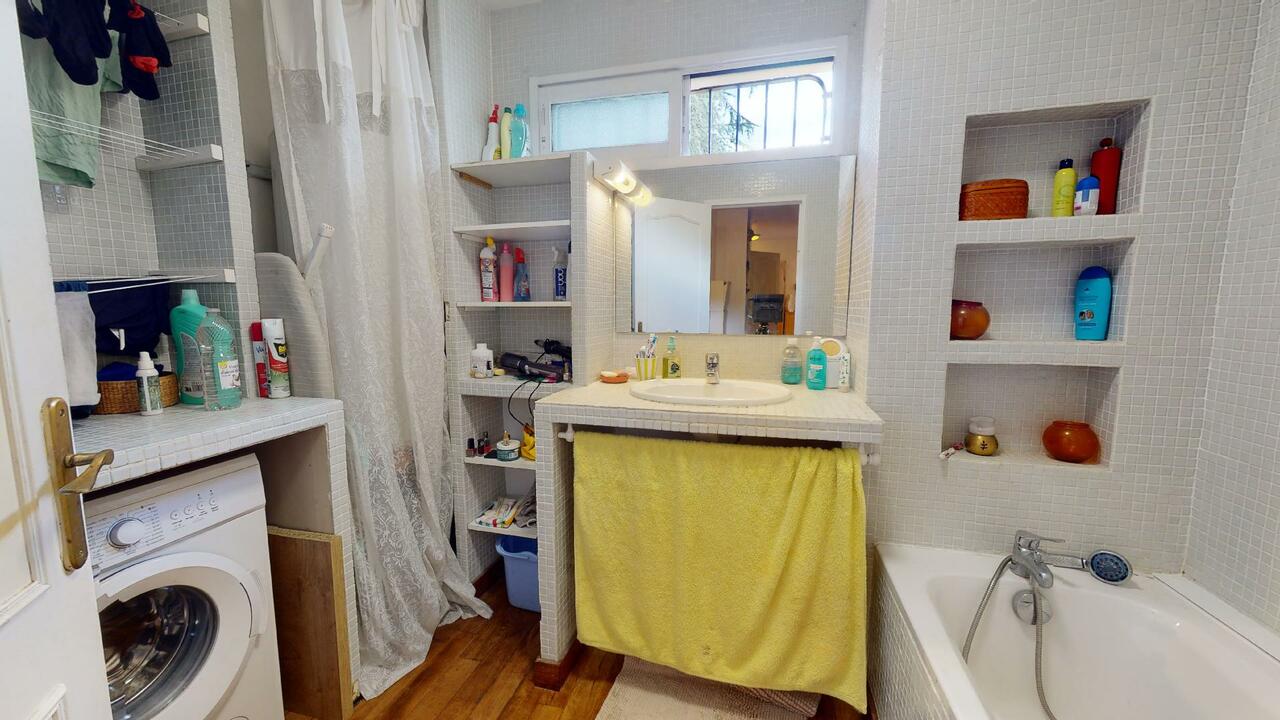 L'appartement dispose de deux salles de bain avec une toilette séparée. La première se compose d'un meuble vasque avec miroir et d'une cabine de douche. La seconde dispose d'un lavabo avec un miroir, un porte-serviettes radiateur, une baignoire, une machine à laver et de nombreux espaces de rangements.