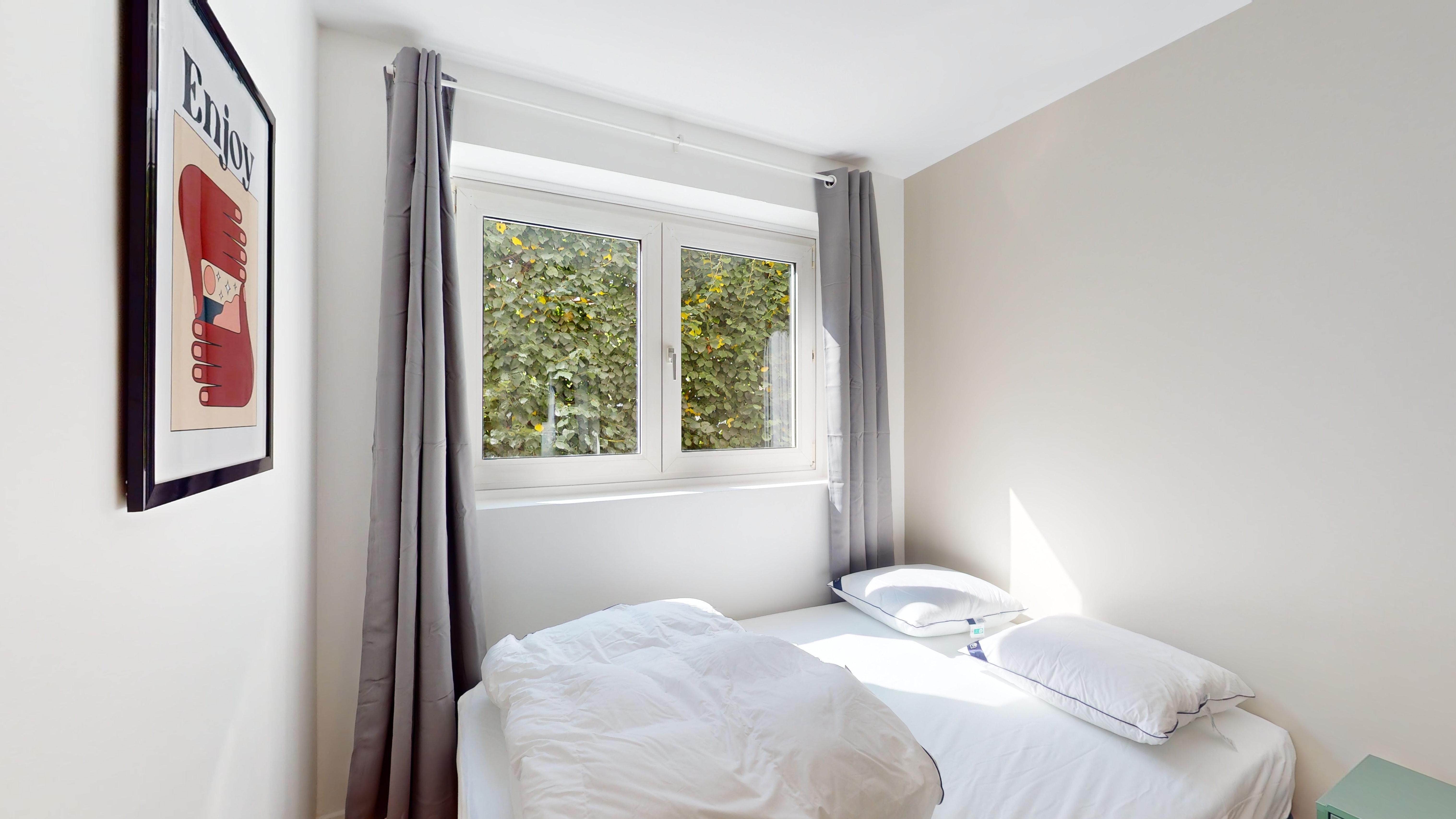 La chambre Room 4, d'une superficie de 9 m², est spécialement aménagée pour une personne. Elle comprend un lit double confortable, une armoire spacieuse pour vos affaires, ainsi qu'un bureau et une chaise pour travailler ou étudier en toute tranquillité. La chambre bénéficie également d'une connexion internet haut débit et partage une salle de bain bien entretenue avec d'autres locataires.