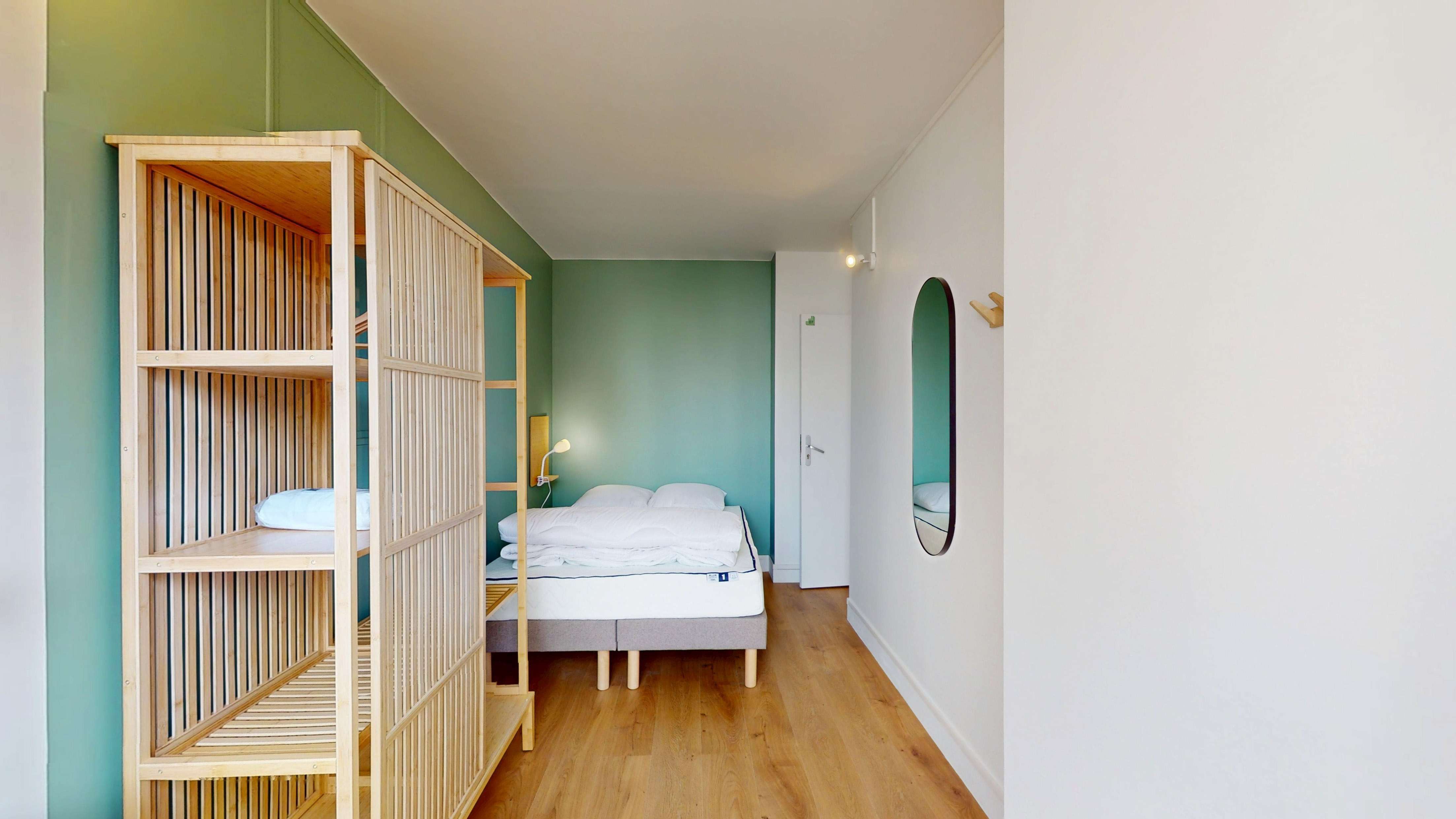 Votre chambre privée est un havre de paix avec un lit douillet, un bureau spacieux pour étudier ou travailler et suffisamment de rangements pour toutes vos affaires. La salle de bain attenante est moderne et juste pour vous, garantissant votre intimité.