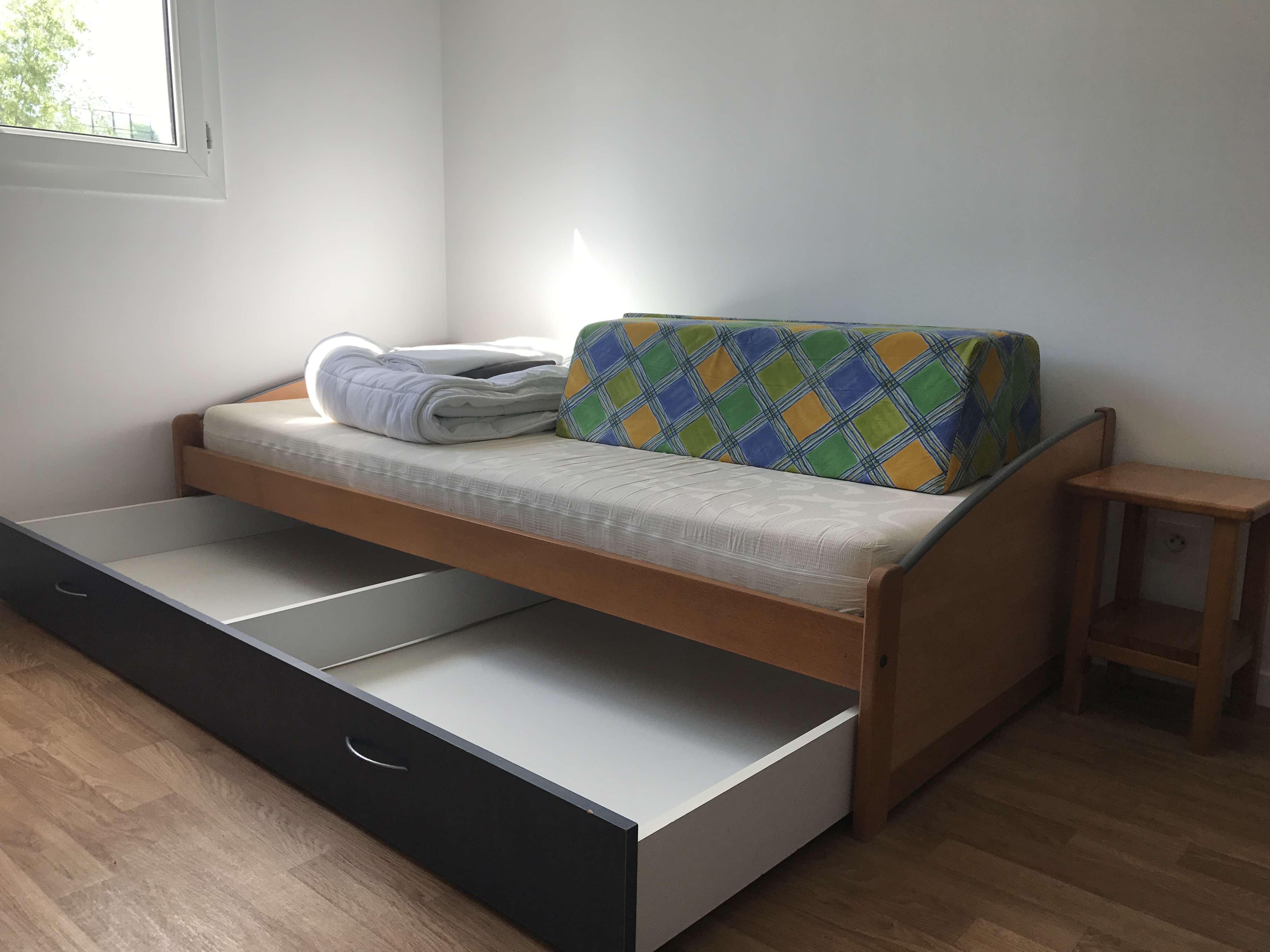 · Une banquette lit (90x200 cm) avec dosseret version jour/nuit.