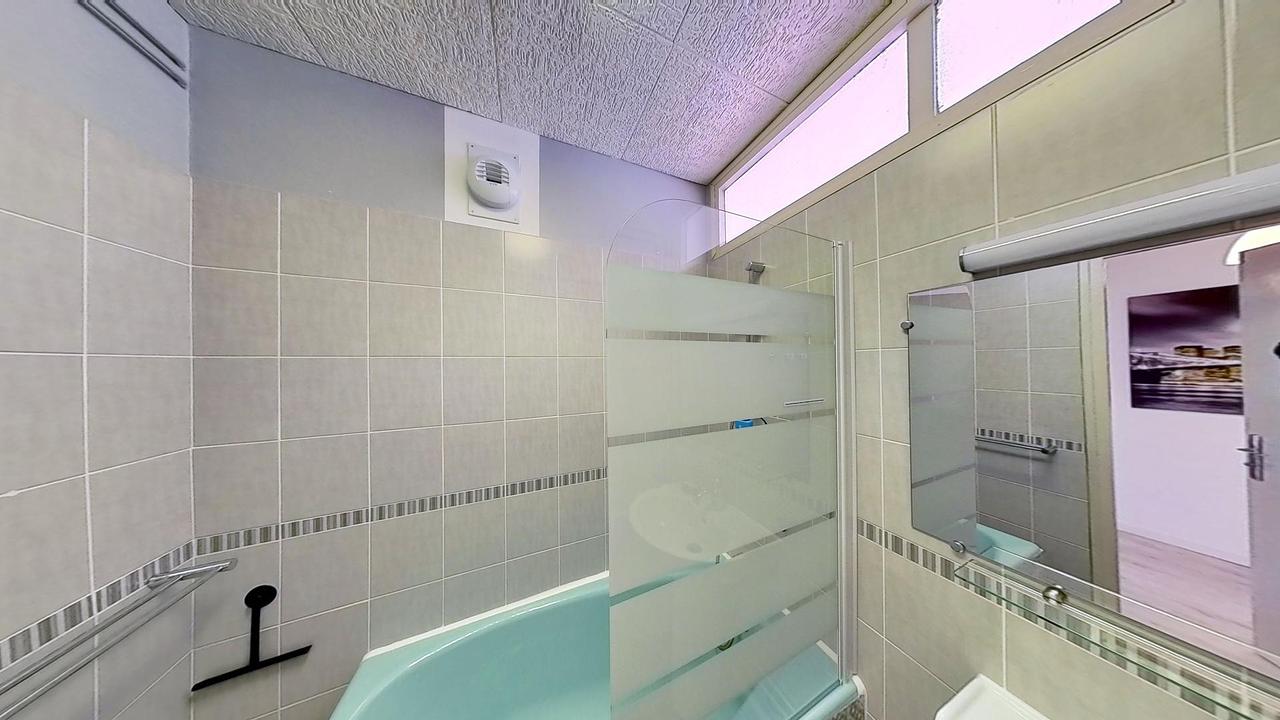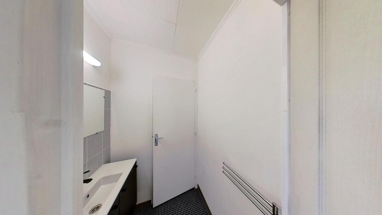 La salle d'eau dispose d'une vasque avec miroir et une douche.