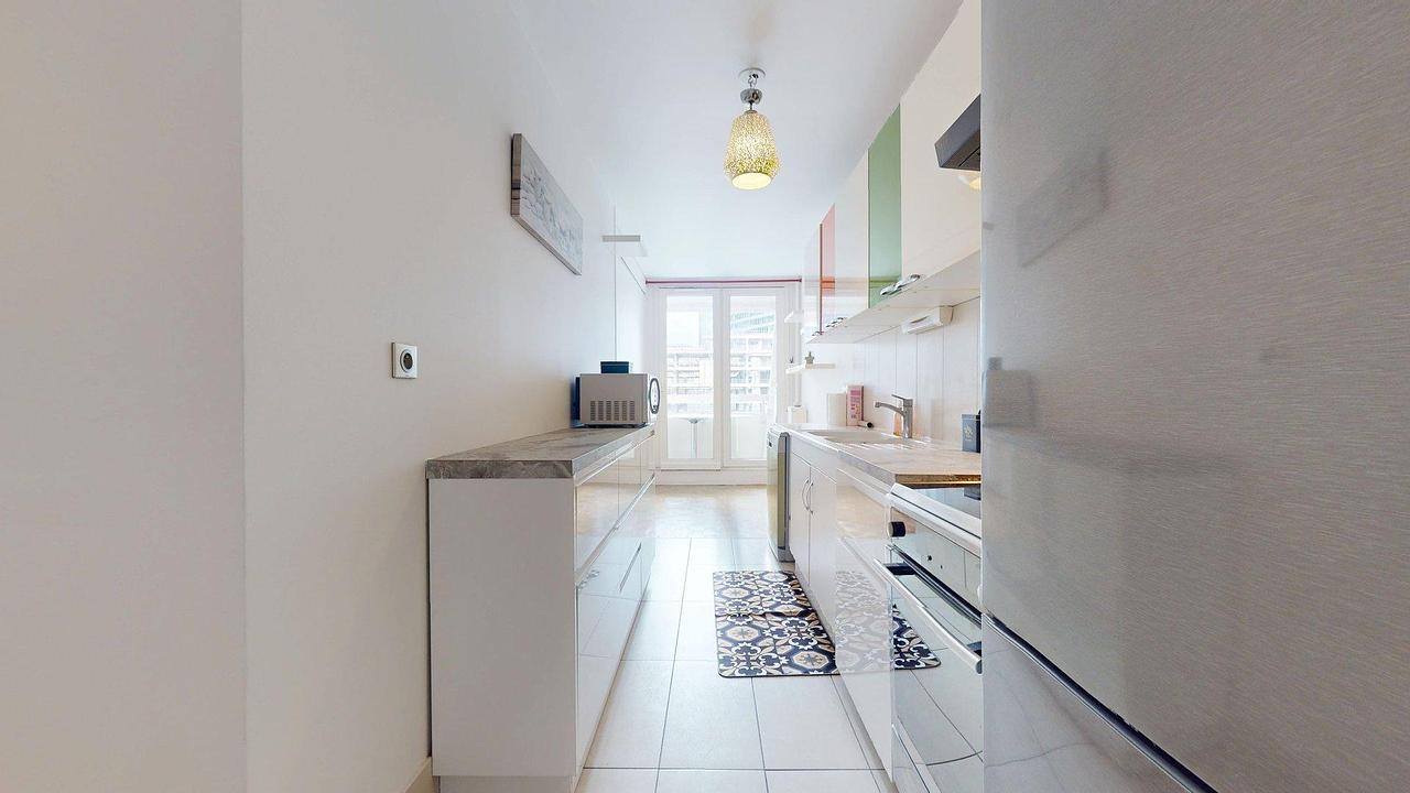🏠 Les espaces communsCuisine équipée : four, micro-ondes, plaques de cuisson, hotte, évier, réfrigérateur avec compartiment congélateur, lave-vaisselle, nombreux rangements et ustensiles. Elle donne accès direct au balcon pour profiter des beaux jours, sans vis-à-vis.