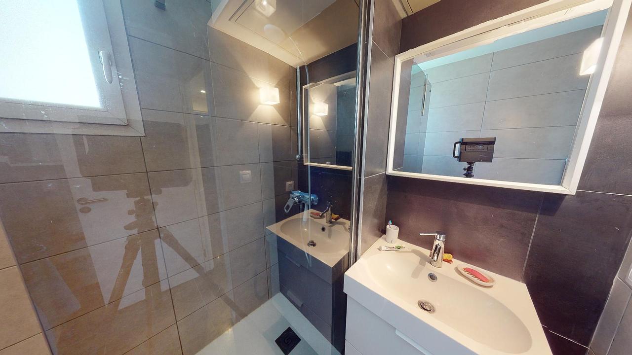 Un wc et deux salles de bains complètent les pièces communes. La première salle de bain est composée d’une douche italienne et d’un lavabo sur meuble. La seconde, est également dotée d’une douche à l’italienne, d’un lavabo sur meuble et de rangements.