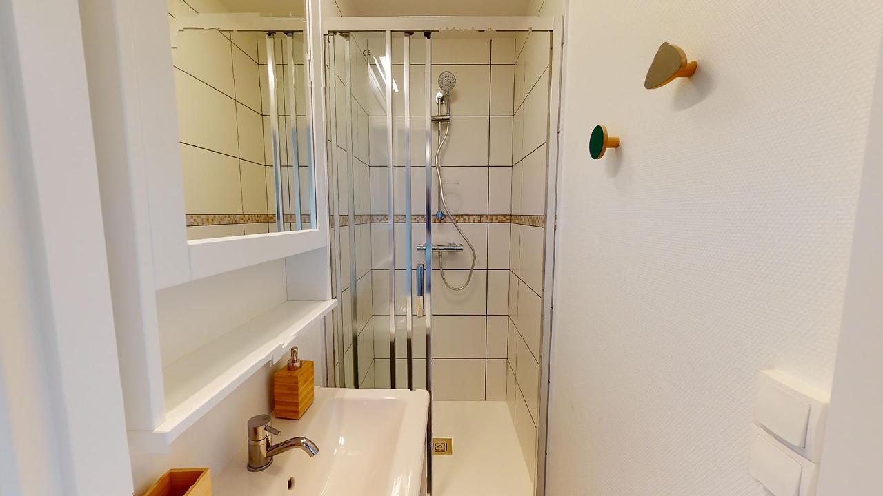 L’appartement comporte quatre chambres, de deux salles d’eau, d’une cuisine séparée et d’un lumineux séjour avec balcon. Dès l’entrée du logement, vous découvrirez une cuisine très bien équipée (plaques de cuisson, four, hotte, lave-vaisselle, frigidaire américain) et dispose d’une table à manger accompagnée de quatre chaises. Le salon se compose d’un canapé, d’une table basse, d’un meuble TV avec sa TV, d’un lampadaire et d’un fauteuil. Une première salle d’eau se munit d’un meuble vasque et d’une douche et la seconde dispose d’une machine à laver, d’un meuble vasque et d’une douche.